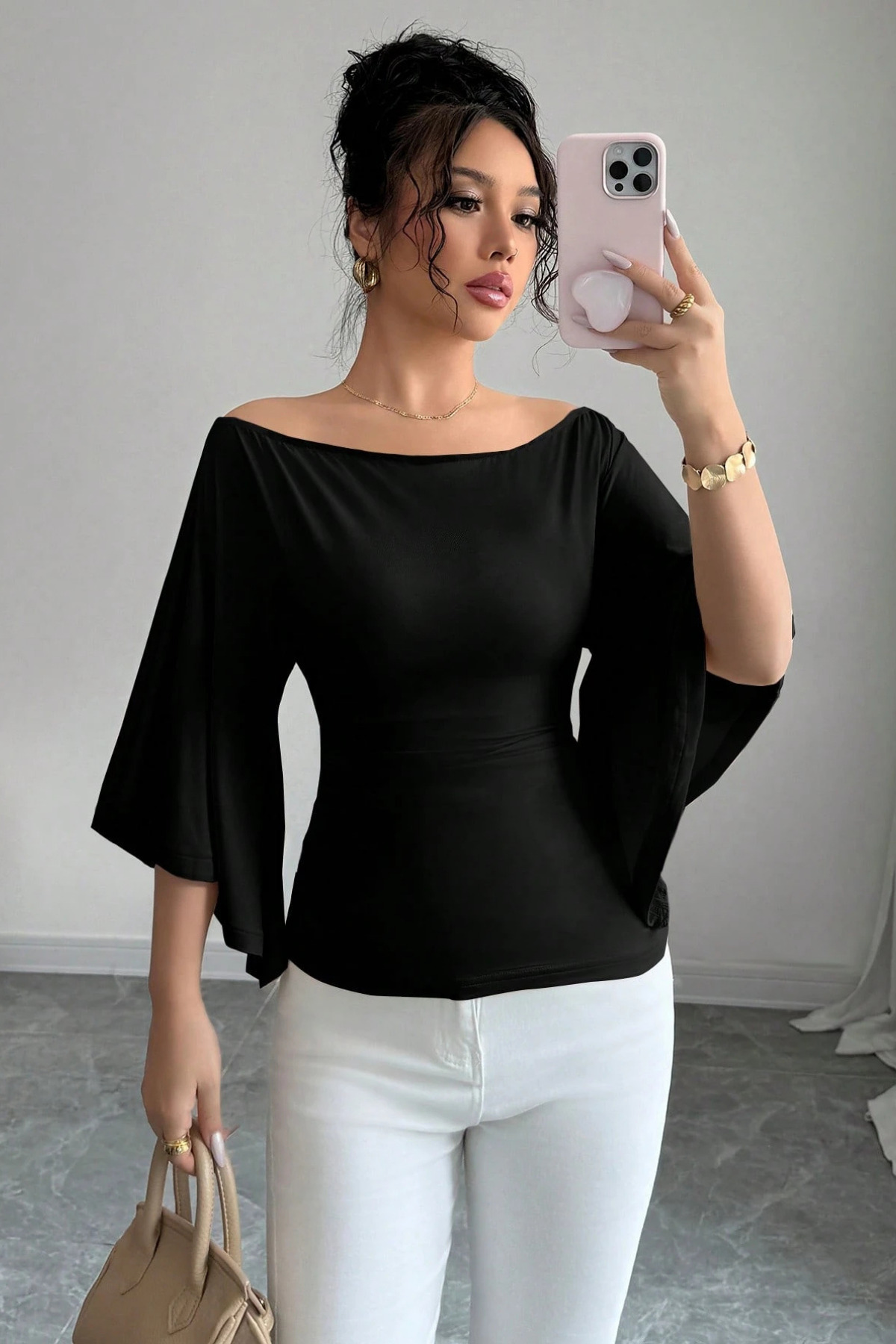 Kadın Beyaz Kayık Yaka Flare Kol Drapeli Fit Bluz Kadın Beyaz Kayık Yaka Flare Kol Drapeli Fit Bluz KDNFLAREKL010 XL