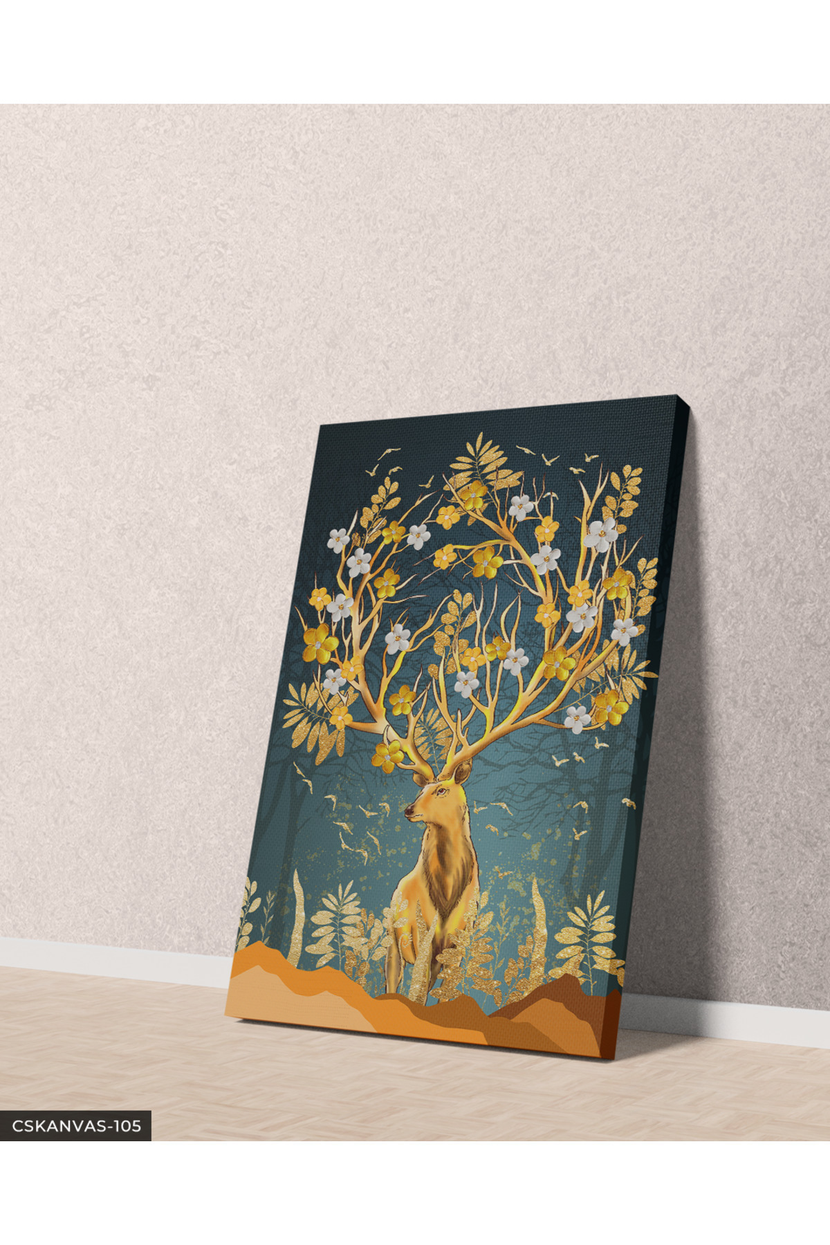 Çiçek Boynuzlu Geyik Tek Parça Kanvas, Canvas Tablo Çiçek Boynuzlu Geyik Tek Parça Kanvas, Canvas Tablo CSKNVS105 140 x 90