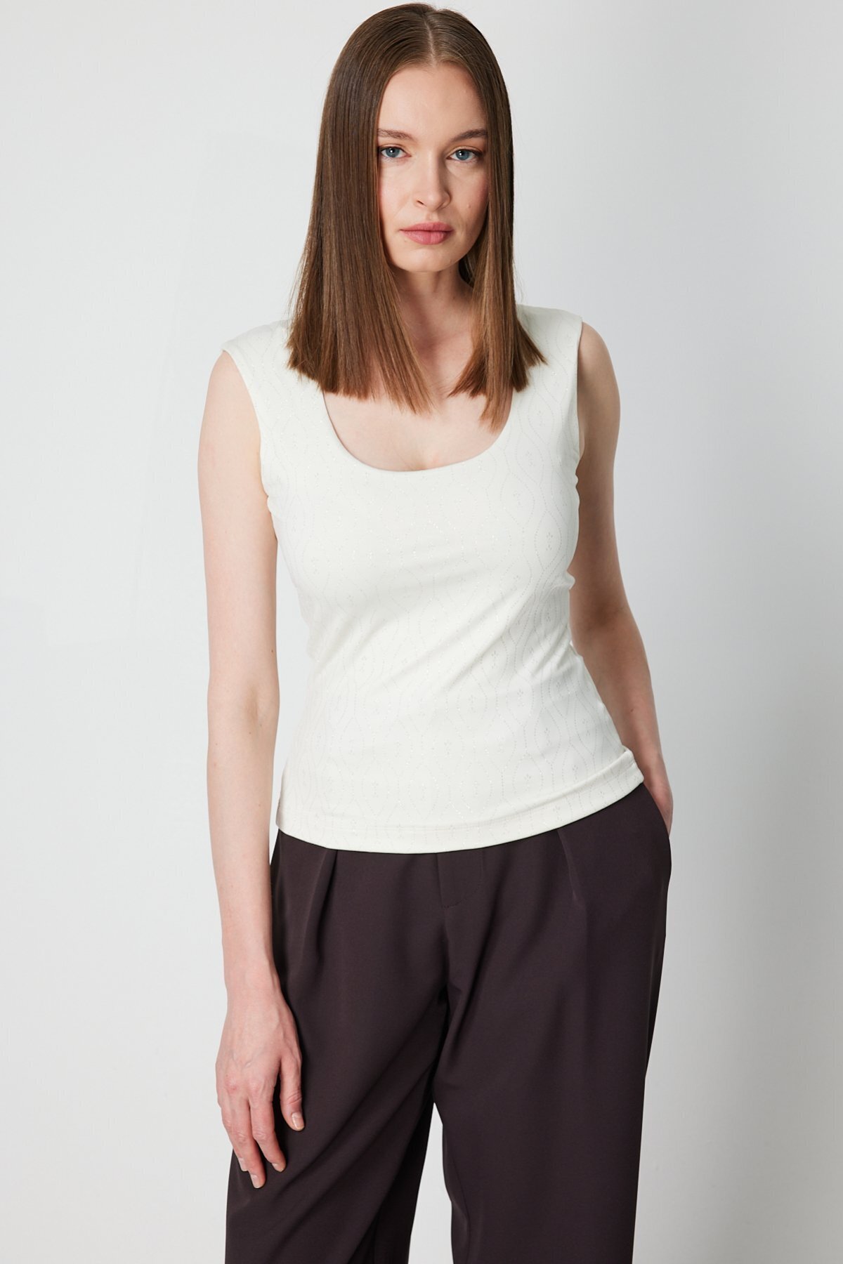 Kumaşı Simli Kare Yaka Bluz Kumaşı Simli Kare Yaka Bluz 26K.ON.BLZ.61384.01 XL