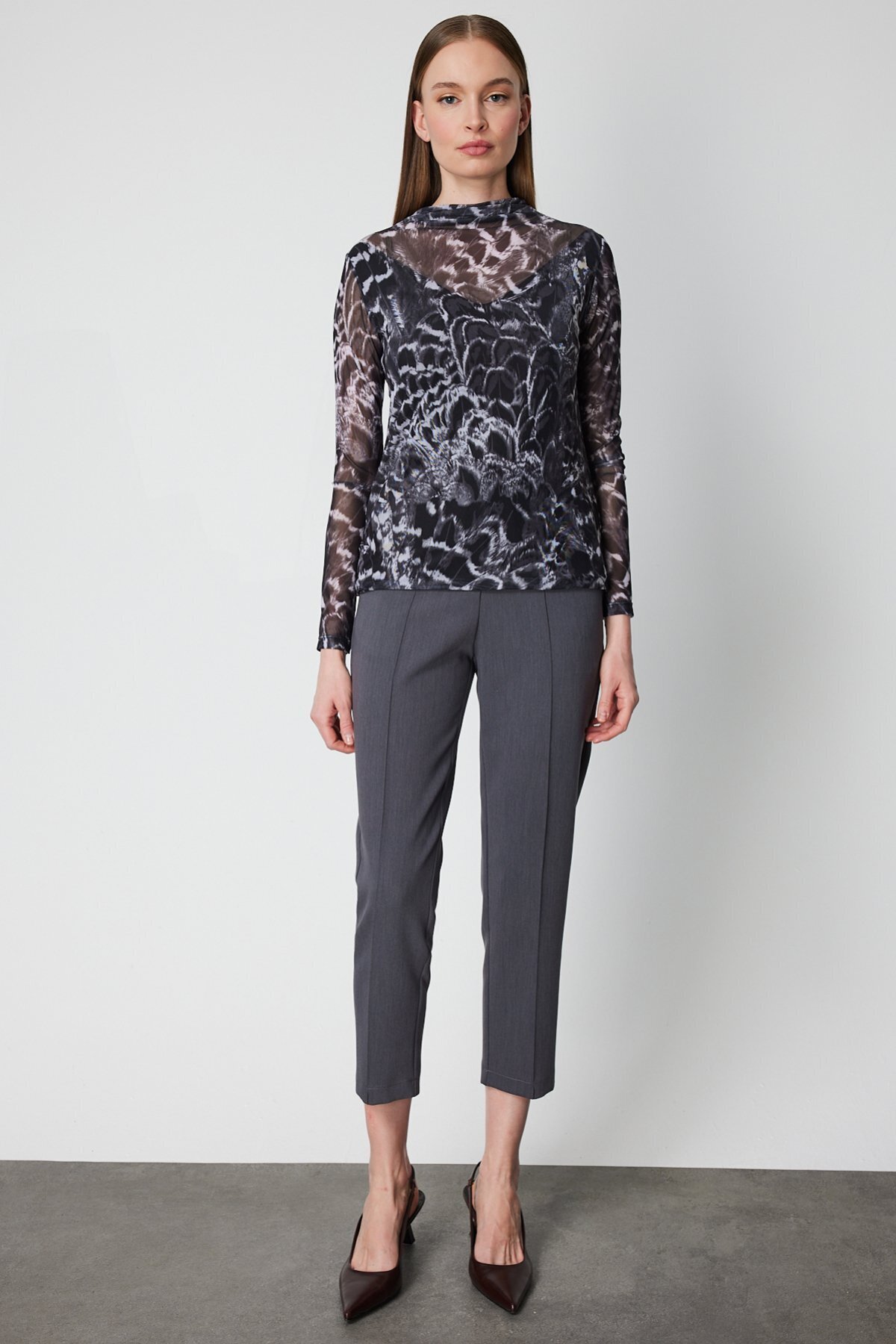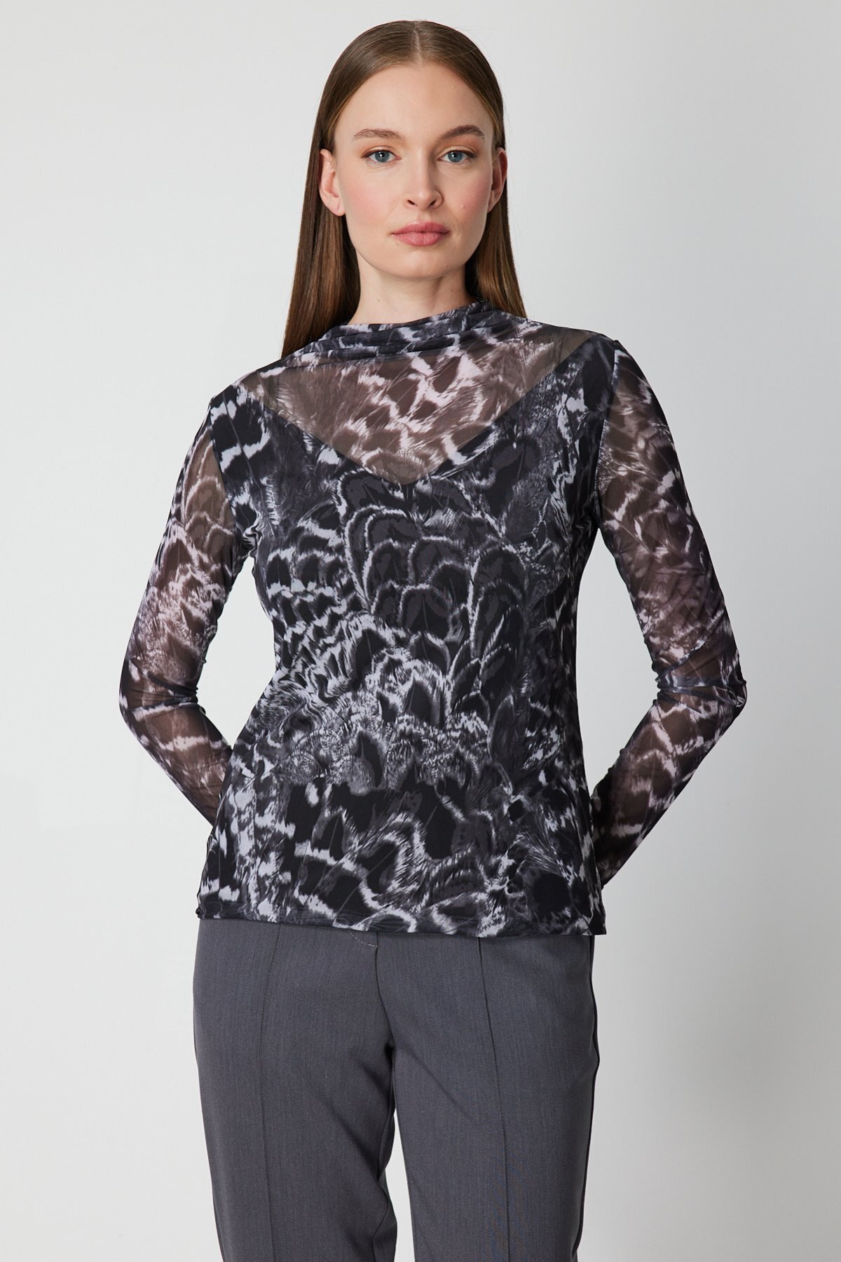 Dik Yaka Desenli Şifon Bluz Dik Yaka Desenli Şifon Bluz 26K.ON.BLZ.62312.01 L