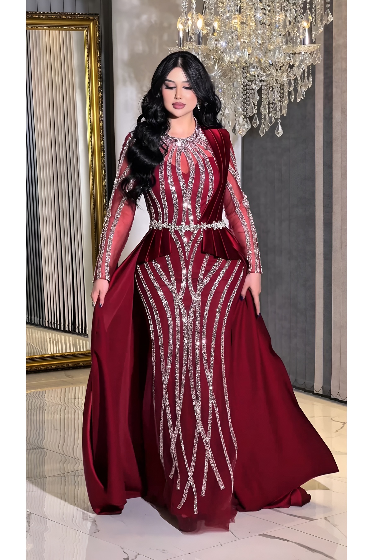 Taş İşlemeli Tül Kollu Saten Kuyruk Detaylı Balık Kesim Abiye Taş İşlemeli Tül Kollu Saten Kuyruk Detaylı Balık Kesim Abiye 990499 52