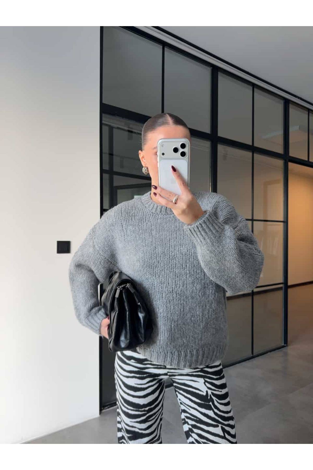 Gri Oversize Triko Kazak – Modern ve Zamansız Şıklık Gri Oversize Triko Kazak – Modern ve Zamansız Şıklık 655 Standart