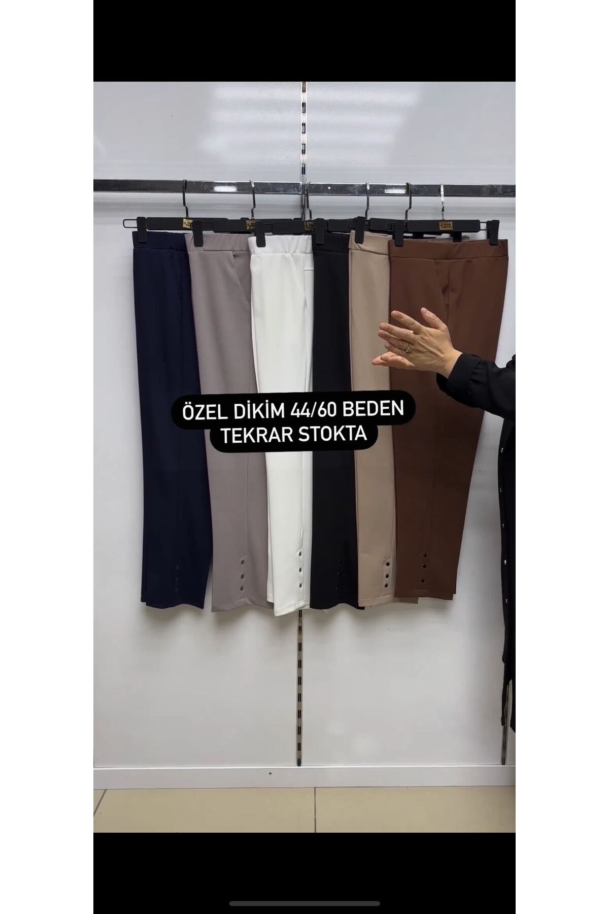 Büyük Beden (50-56) Geniş Paça Beli Lastikli Cepli Düz Renk Kadın Pantolon Büyük Beden (50-56) Geniş Paça Beli Lastikli Cepli Düz Renk Kadın Pantolon W26.53000-01 56