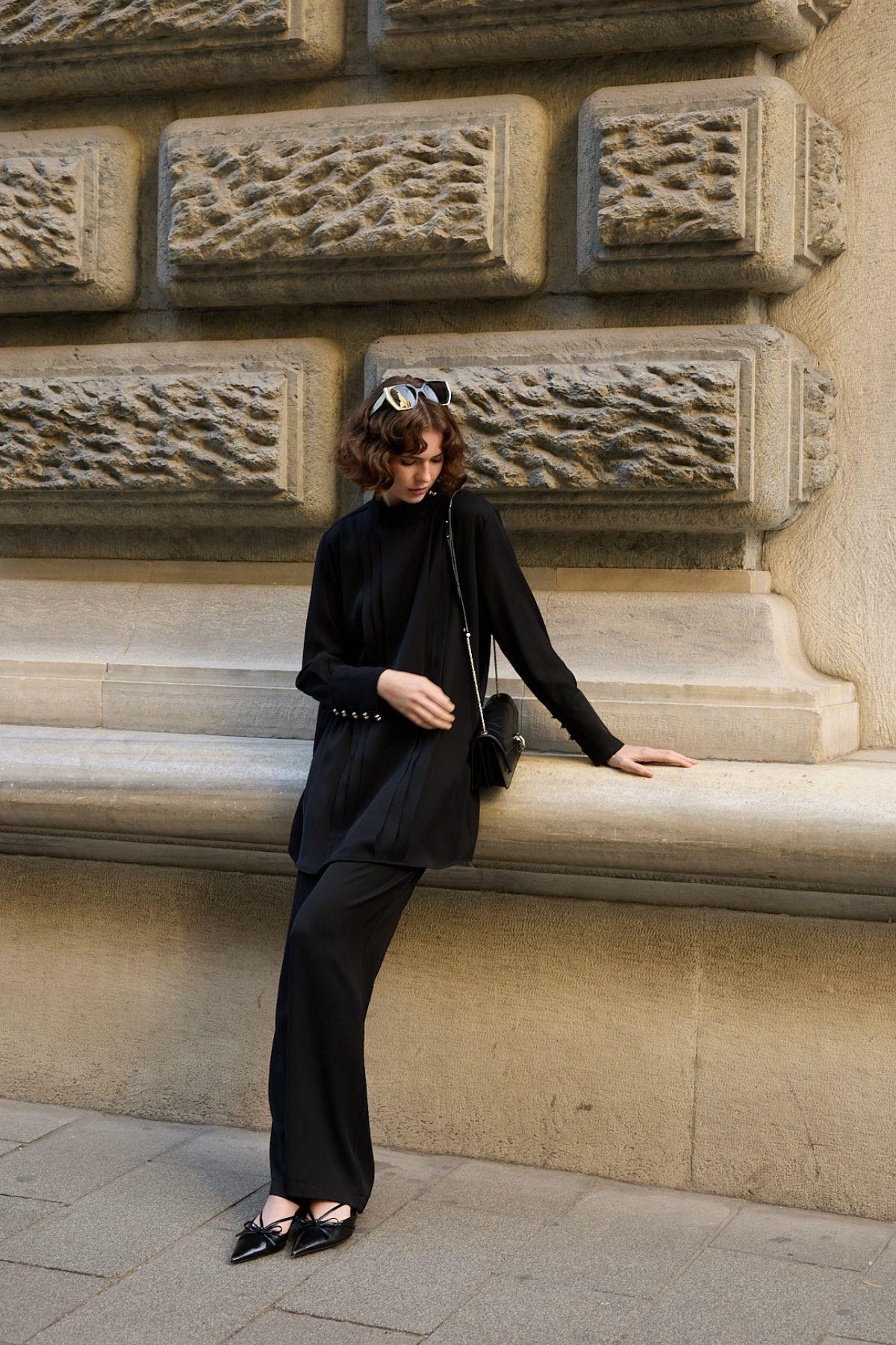 Tale Fermuarlı Garnili Pantolonlu Takım SİYAH Tale Fermuarlı Garnili Pantolonlu Takım SİYAH HLY0126K101.029 2