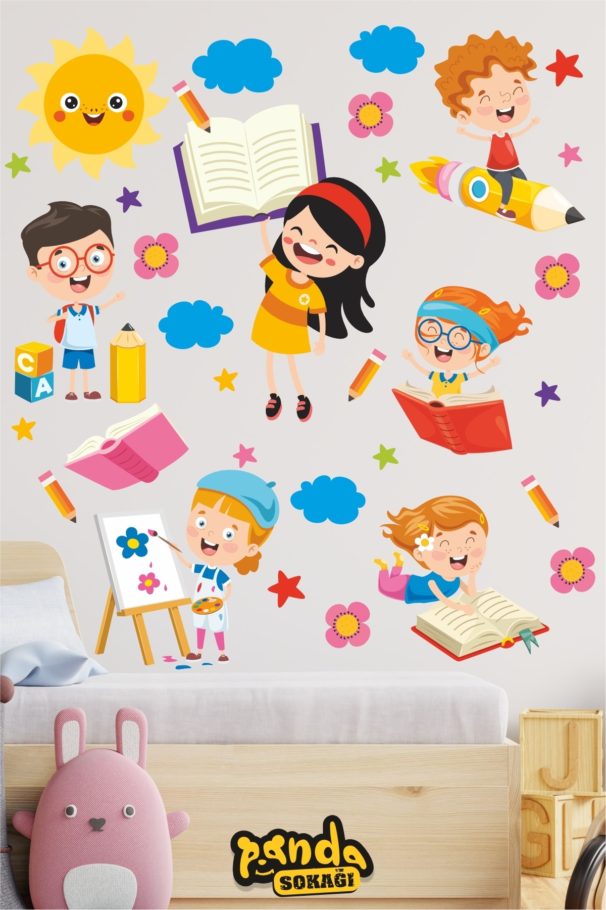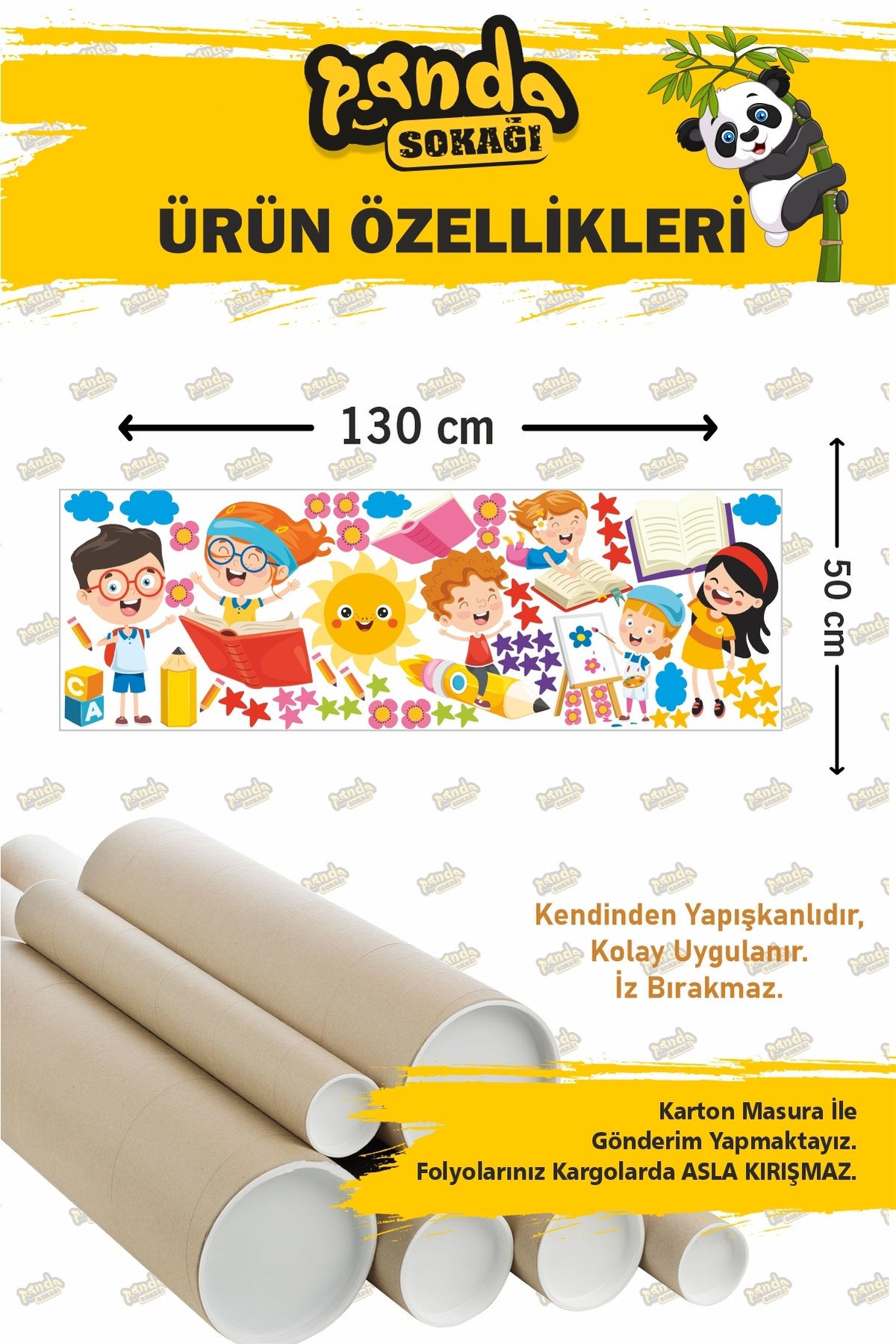 Kalem Kitap Güneş ve Bulutlar Çocuklar Anaokulu Kreş Okul Çocuk Odası Duvar Kapı Cam Sticker Seti Kalem Kitap Güneş ve Bulutlar Çocuklar Anaokulu Kreş Okul Çocuk Odası Duvar Kapı Cam Sticker Seti G-218 130 x 50