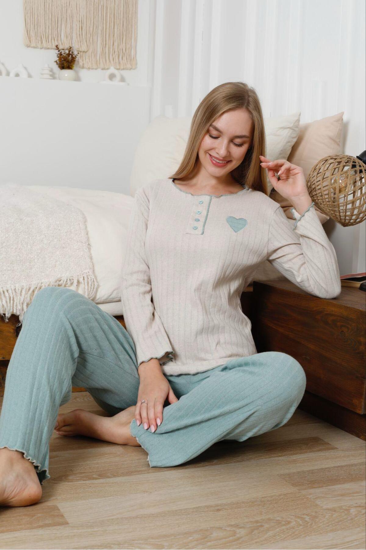 Interlok Bisiklet Yaka Uzun Kol Kadın Pijama Takımı Interlok Bisiklet Yaka Uzun Kol Kadın Pijama Takımı İNTERLOK 2XL