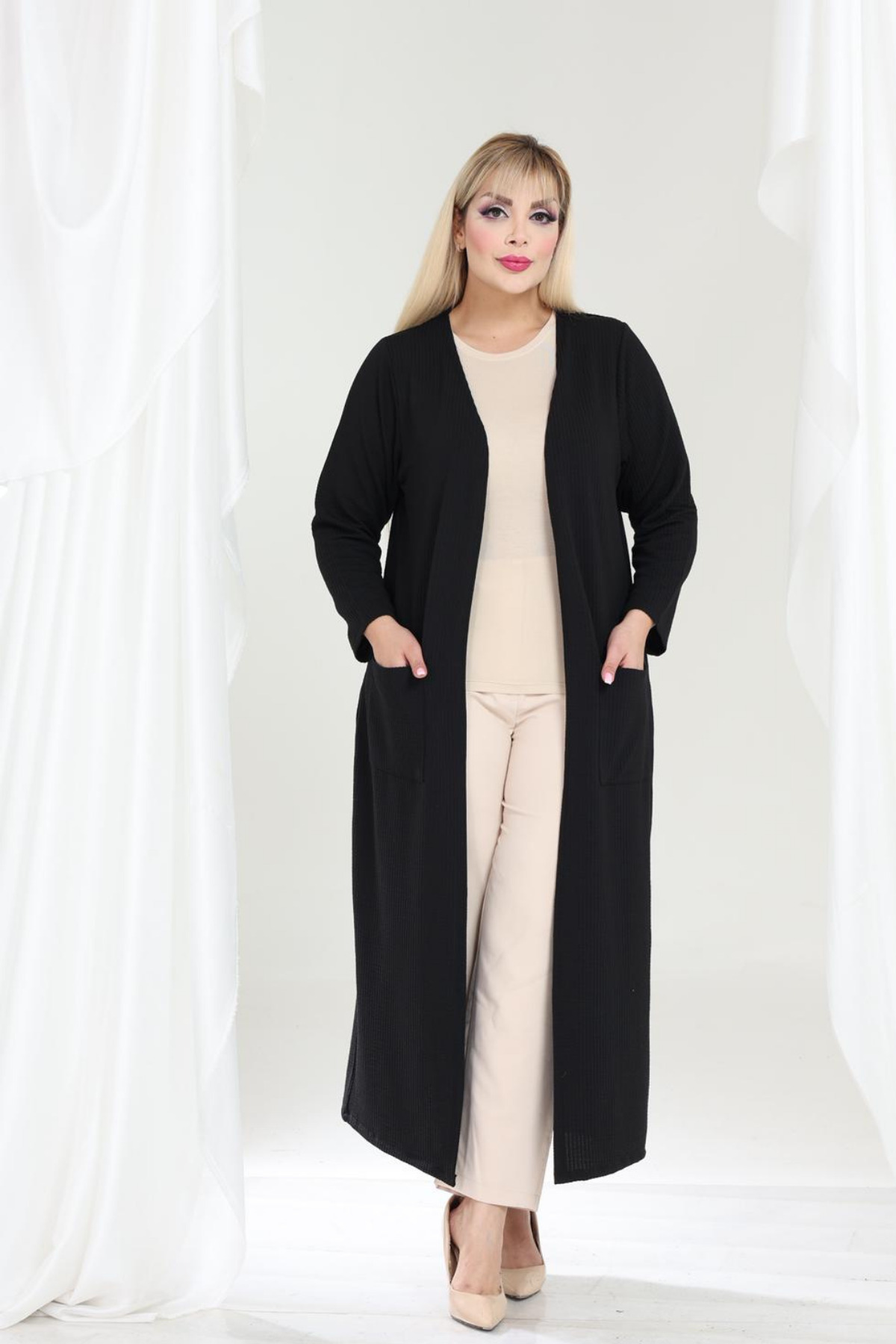 Kadın Siyah Dokulu Örme Kumaş Büyük Beden Uzun Hırka Kadın Siyah Dokulu Örme Kumaş Büyük Beden Uzun Hırka ORM-BRG-HRK-SYH 52-54