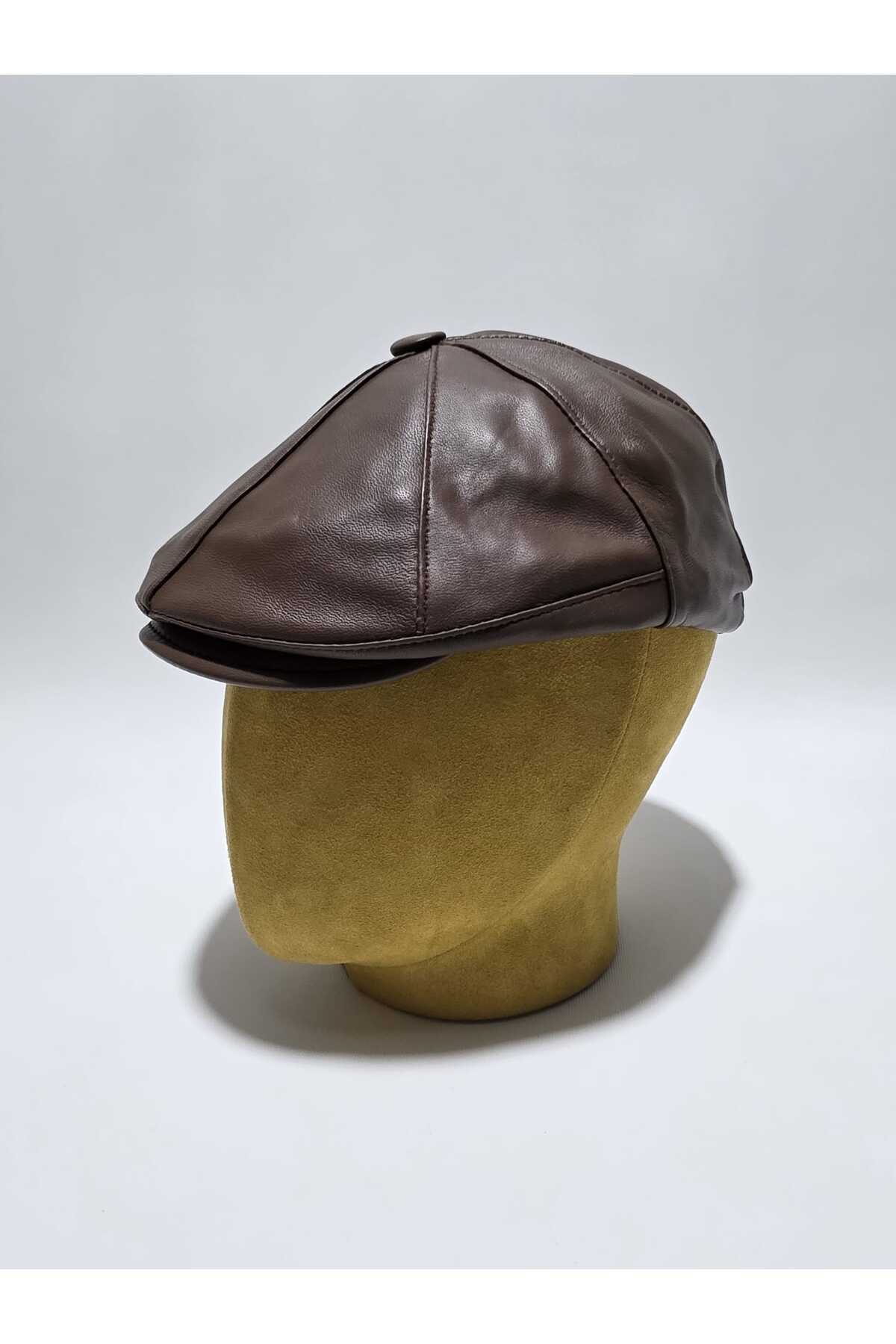 Hakiki Deri Parçalı Kasket Şapka Hakiki Deri Parçalı Kasket Şapka ÜN-0000008 56-61
