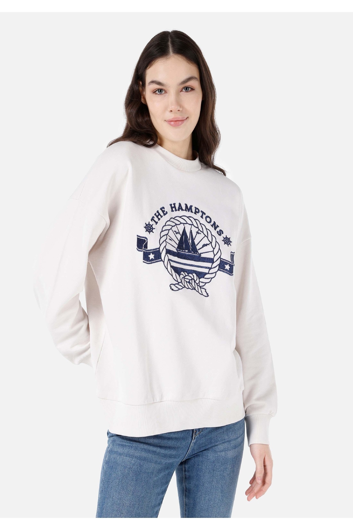 Regular Fit Yuvarlak Yaka Sloganlı Kadın Ekru Sweatshirt Regular Fit Yuvarlak Yaka Sloganlı Kadın Ekru Sweatshirt CL1076579_Q1.V2 L