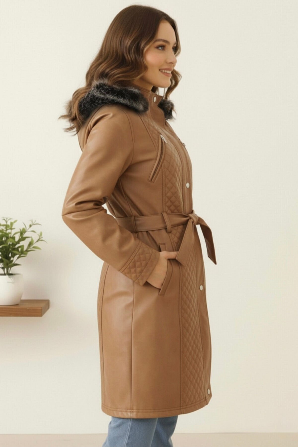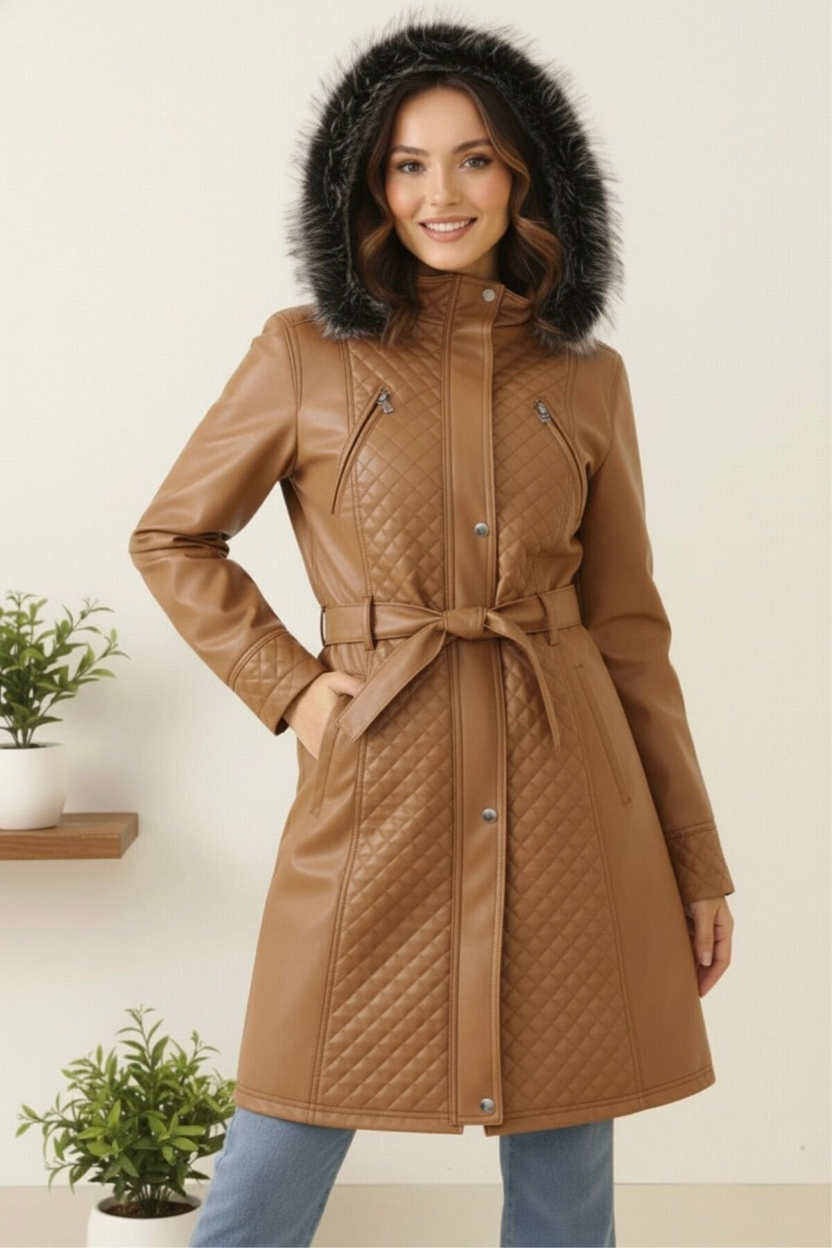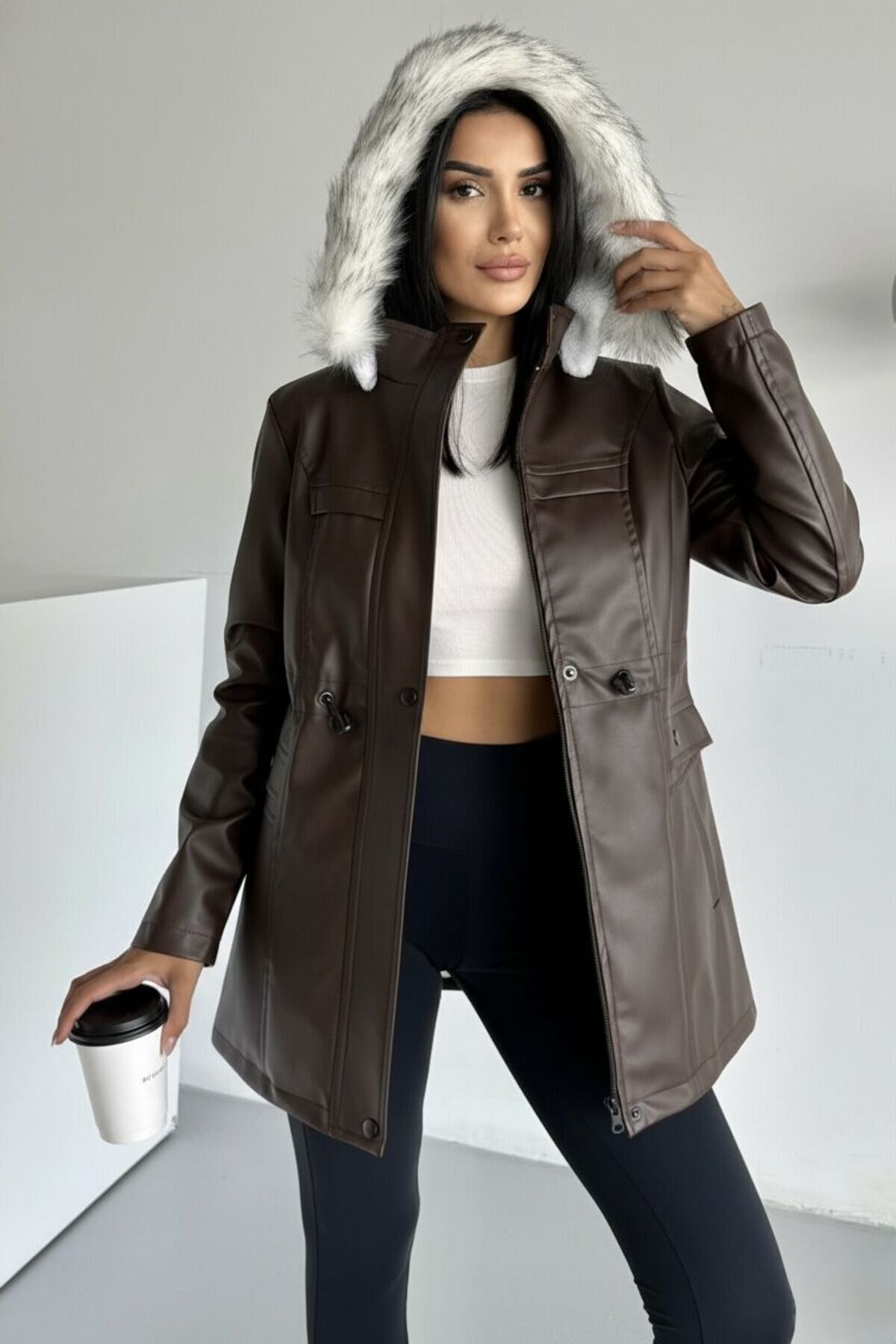 Deri Kapüşonlu Polar Astarlı Yeni Sezon Kadın Mont KS2559 Deri Kapüşonlu Polar Astarlı Yeni Sezon Kadın Mont KS2559 42