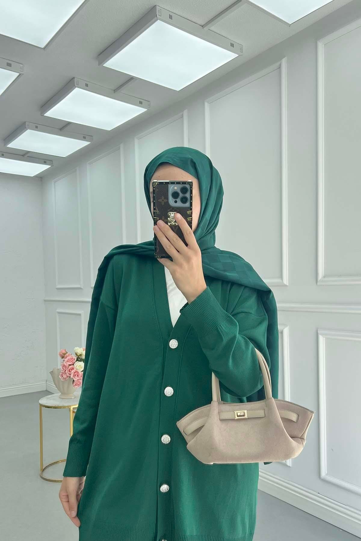 Merserize Düğme Detaylı Hırka Zümrüt Yeşili Merserize Düğme Detaylı Hırka Zümrüt Yeşili PDSG14203 تک سایز
