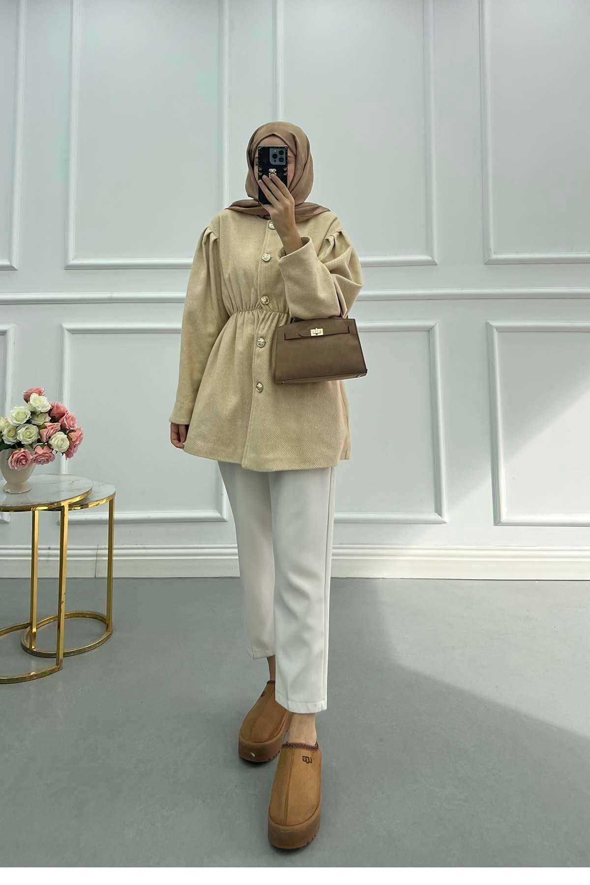 Balon Kol Kuşaklı Kürklü Kaban Lacivert Balon Kol Kuşaklı Kürklü Kaban Lacivert PDTB4026 2