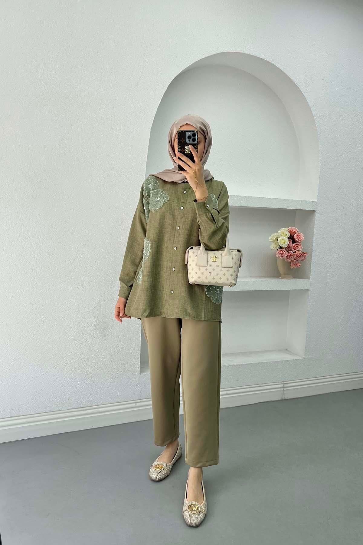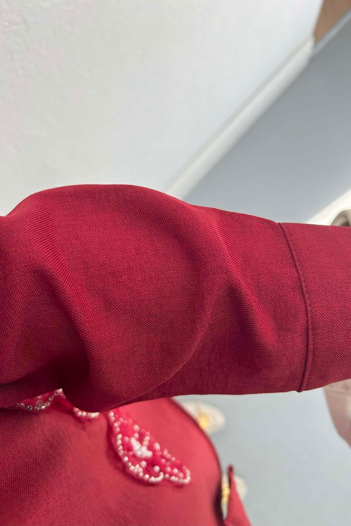 Tül Çiçekli Boncuk İşlemeli Gömlek Bordo Tül Çiçekli Boncuk İşlemeli Gömlek Bordo PDHTA7944 L