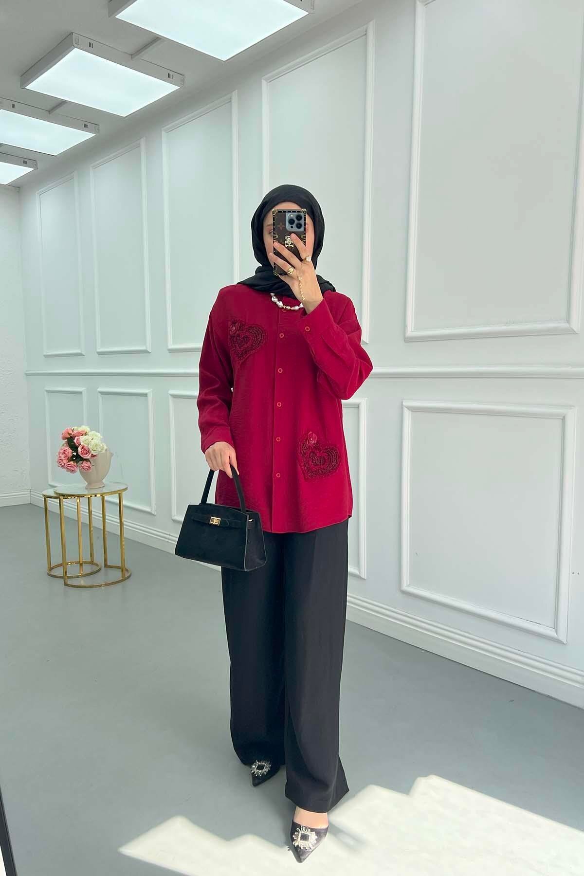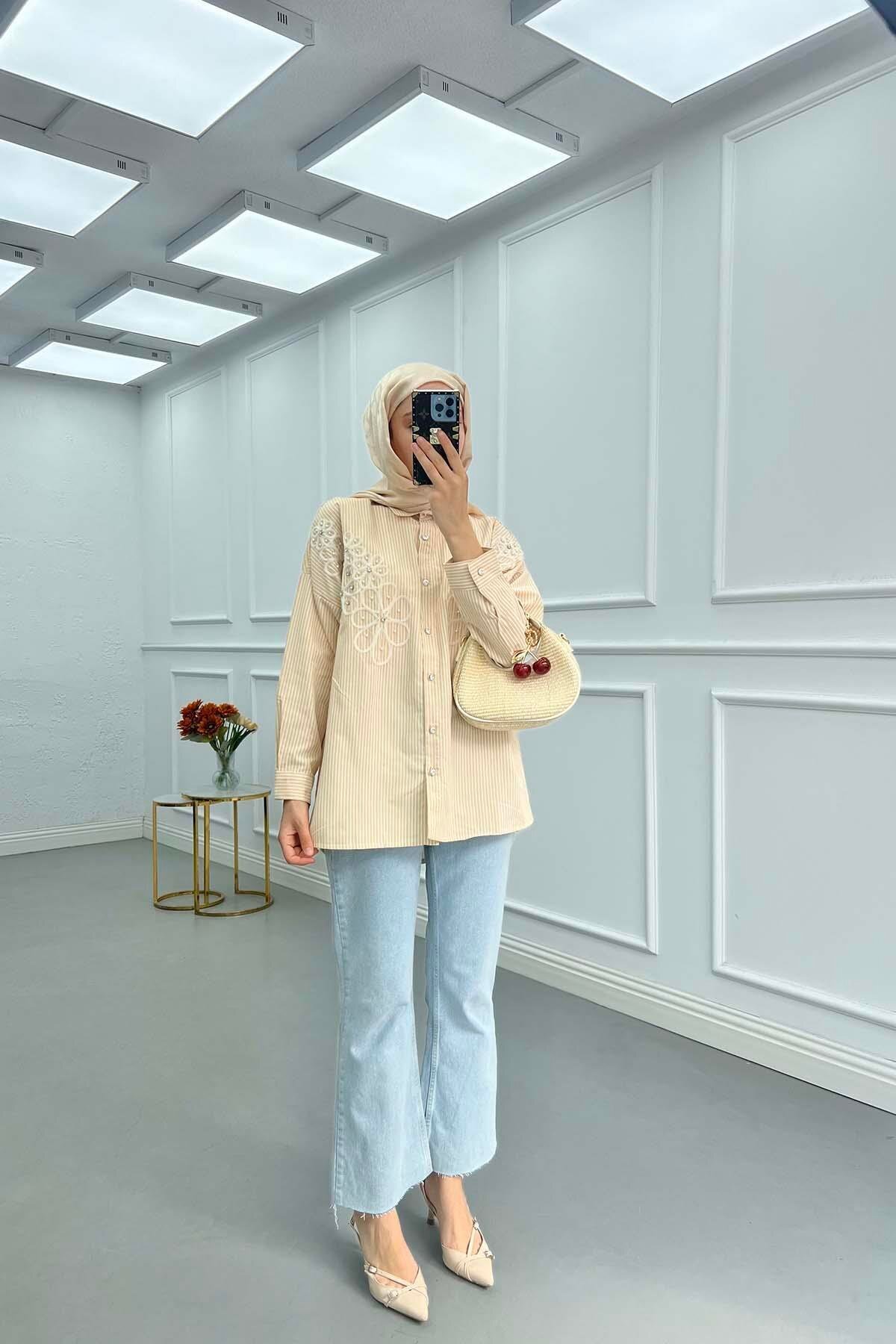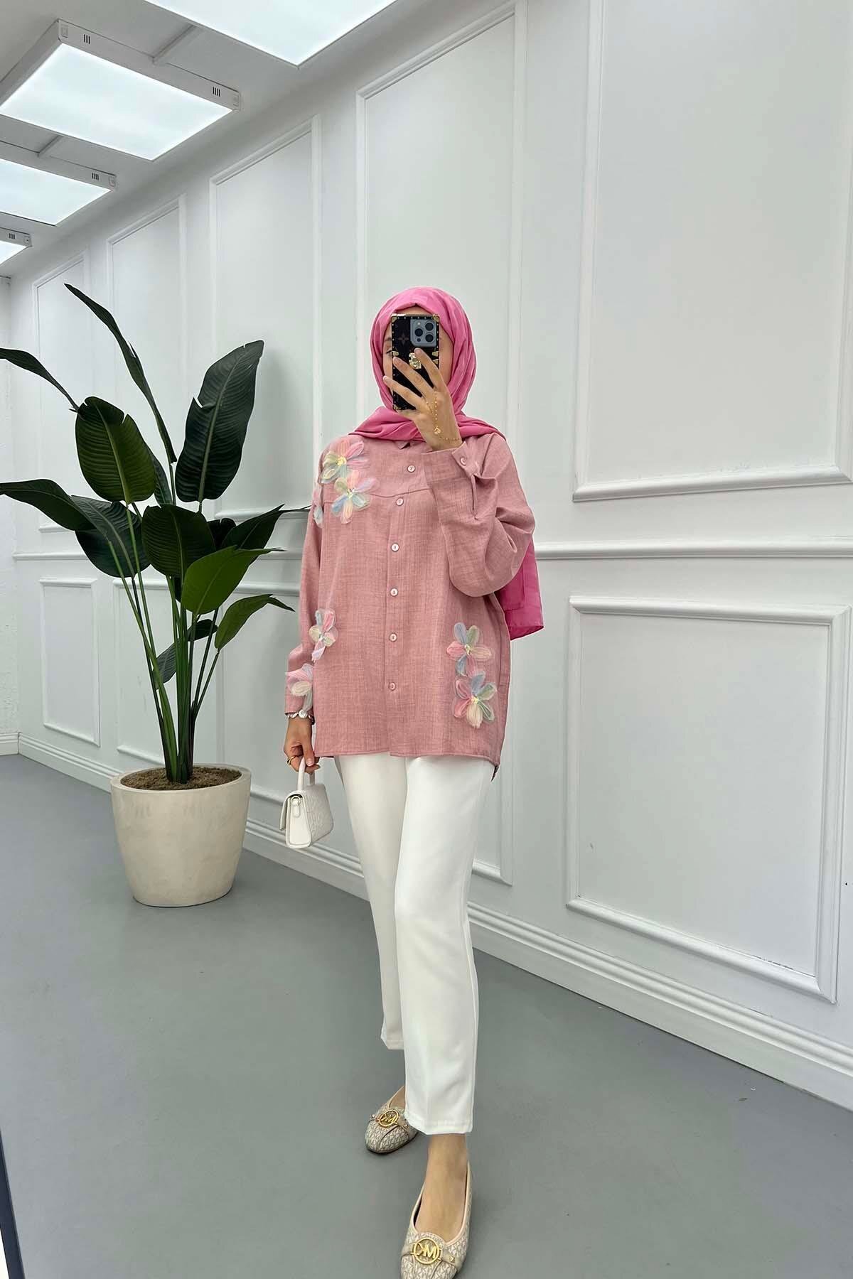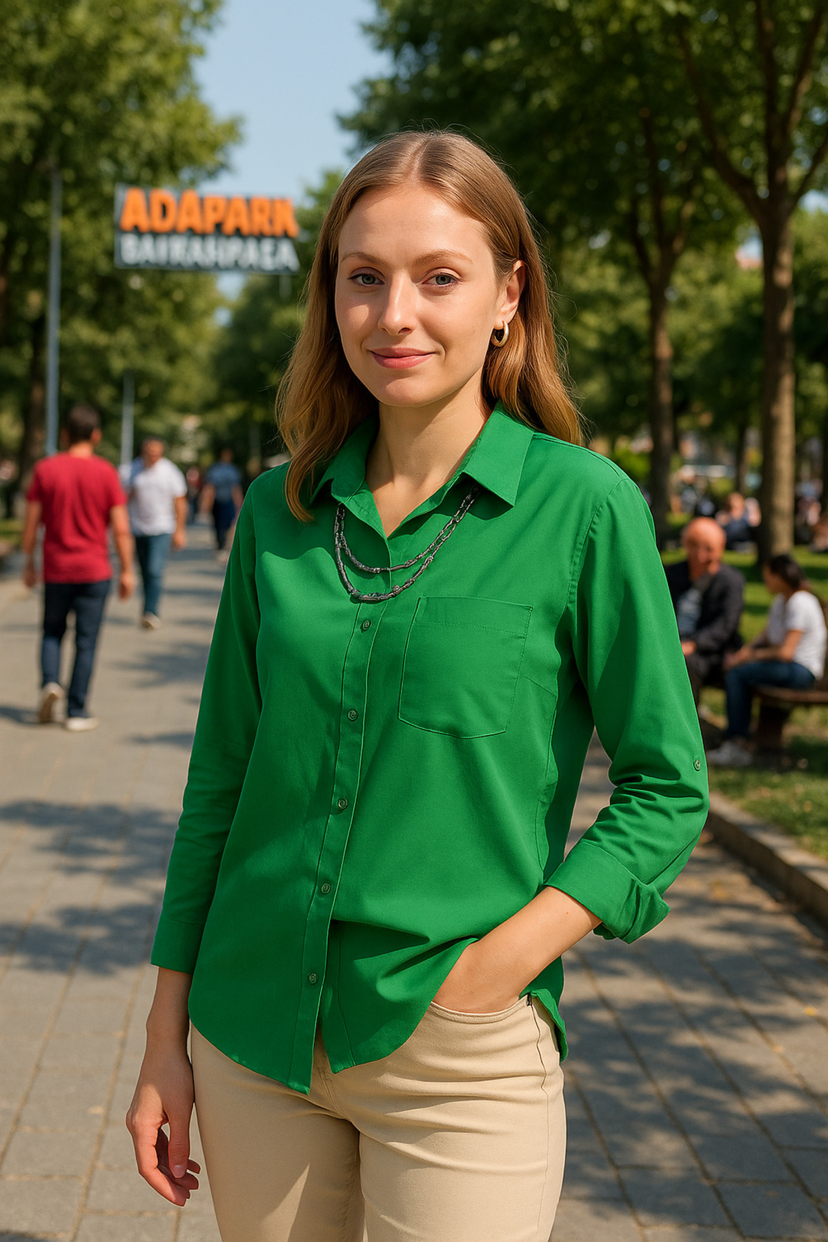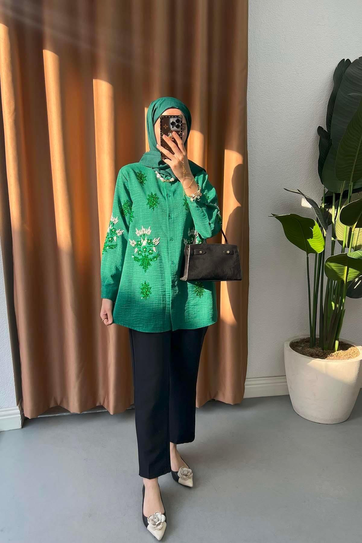 Pul ve Nakış Detaylı Gömlek Yeşil Pul ve Nakış Detaylı Gömlek Yeşil PDFİX4527 44
