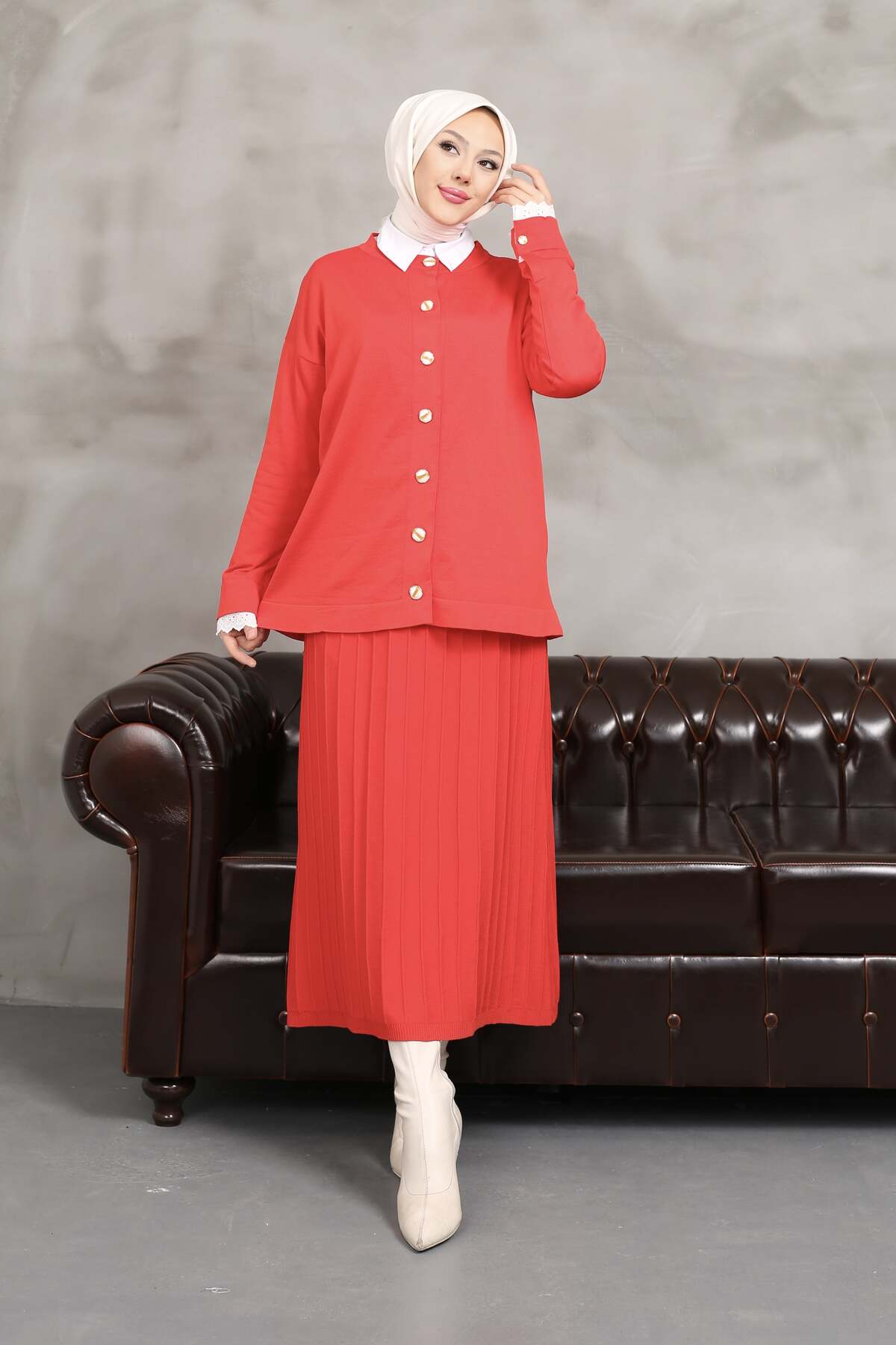 Düğme Detaylı Etekli Triko Takım Mavi Düğme Detaylı Etekli Triko Takım Mavi PDYLW4123 تک سایز