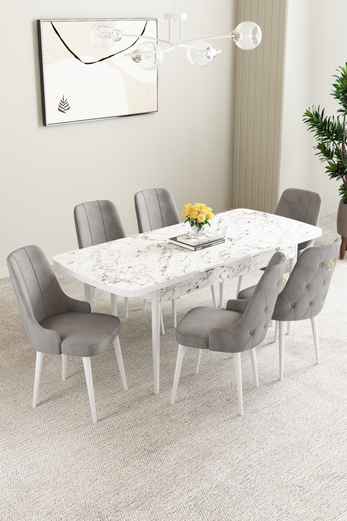 Nice Beyaz Mermer Desen 80X132 Açılabilir Mdf Masa Yemek Odası Takımı, Mutfak Takımı 6 Adet Sandalye Nice Beyaz Mermer Desen 80X132 Açılabilir Mdf Masa Yemek Odası Takımı, Mutfak Takımı 6 Adet Sandalye nicebeyazmermeralti تک سایز
