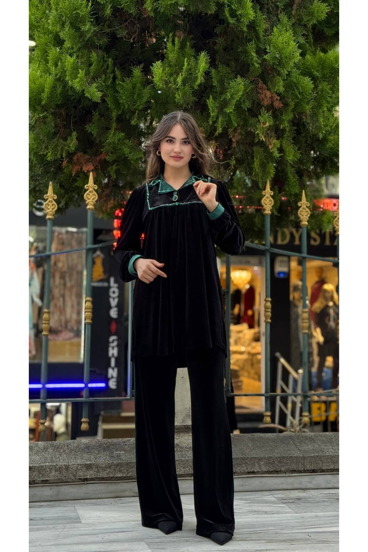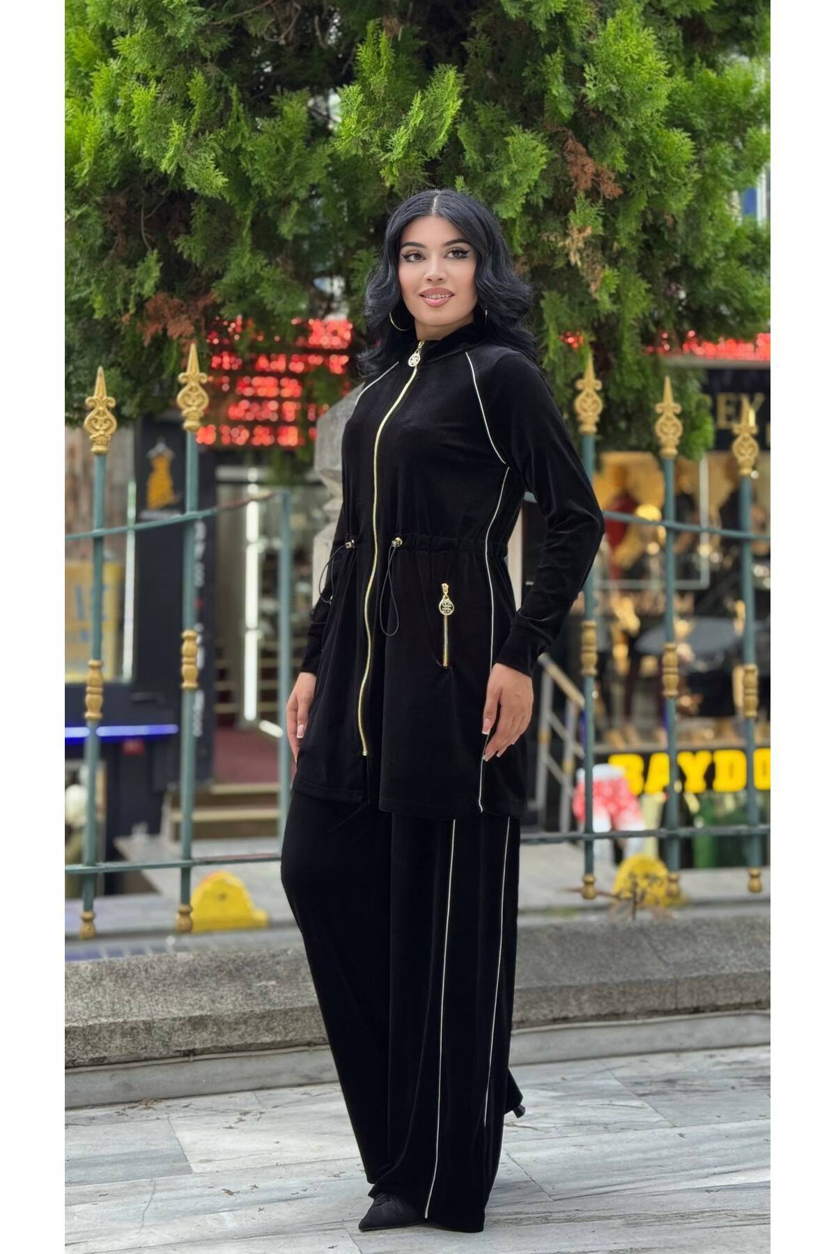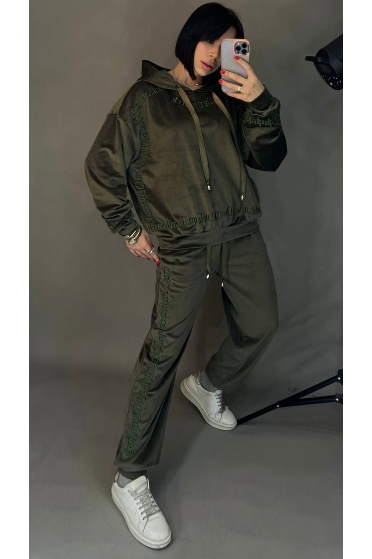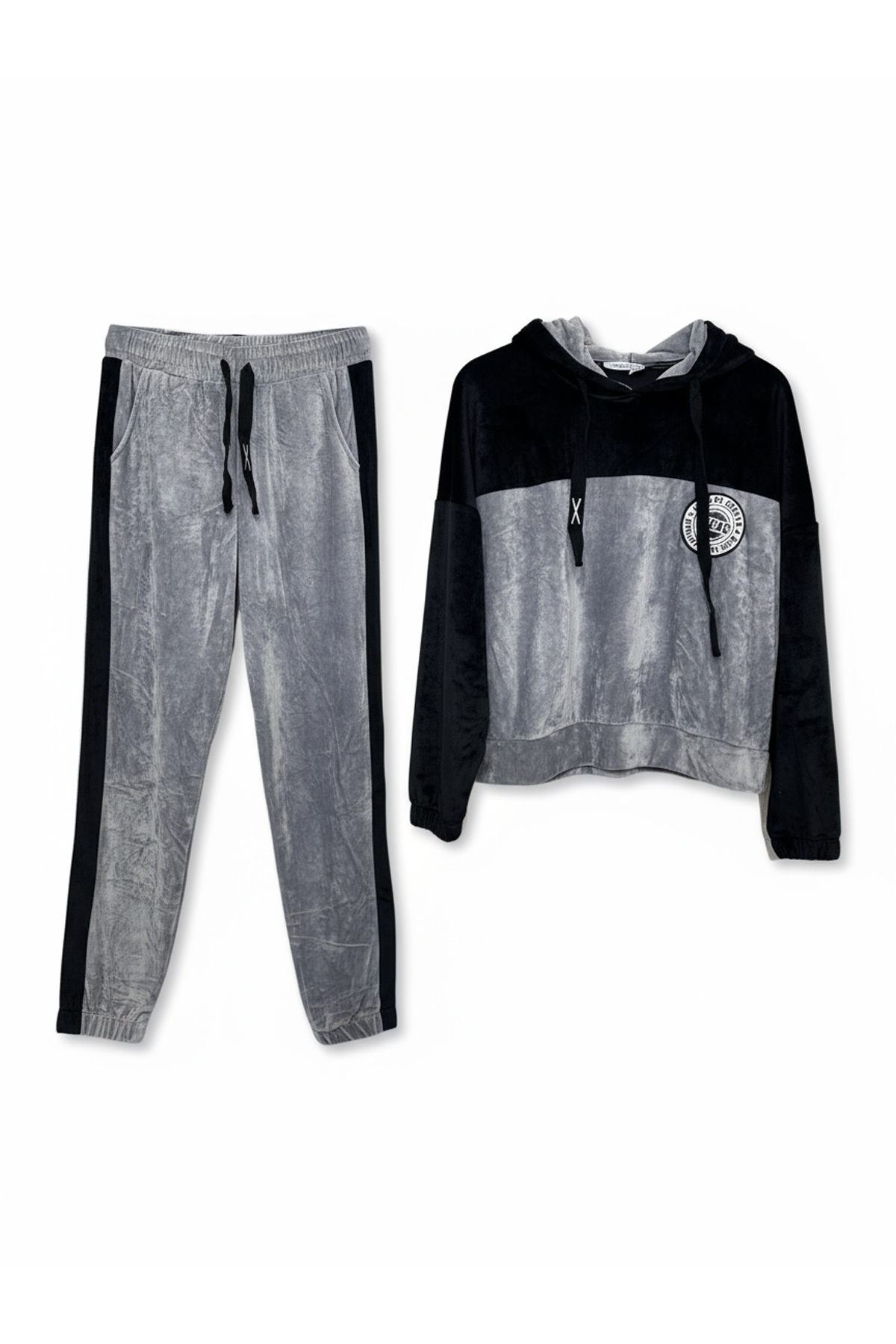 Kadın Kadife Eşofman Takım Kapüşonlu Yazı Detaylı Rahat Kalıp Model Kadın Kadife Eşofman Takım Kapüşonlu Yazı Detaylı Rahat Kalıp Model SPE-TA-0005 L