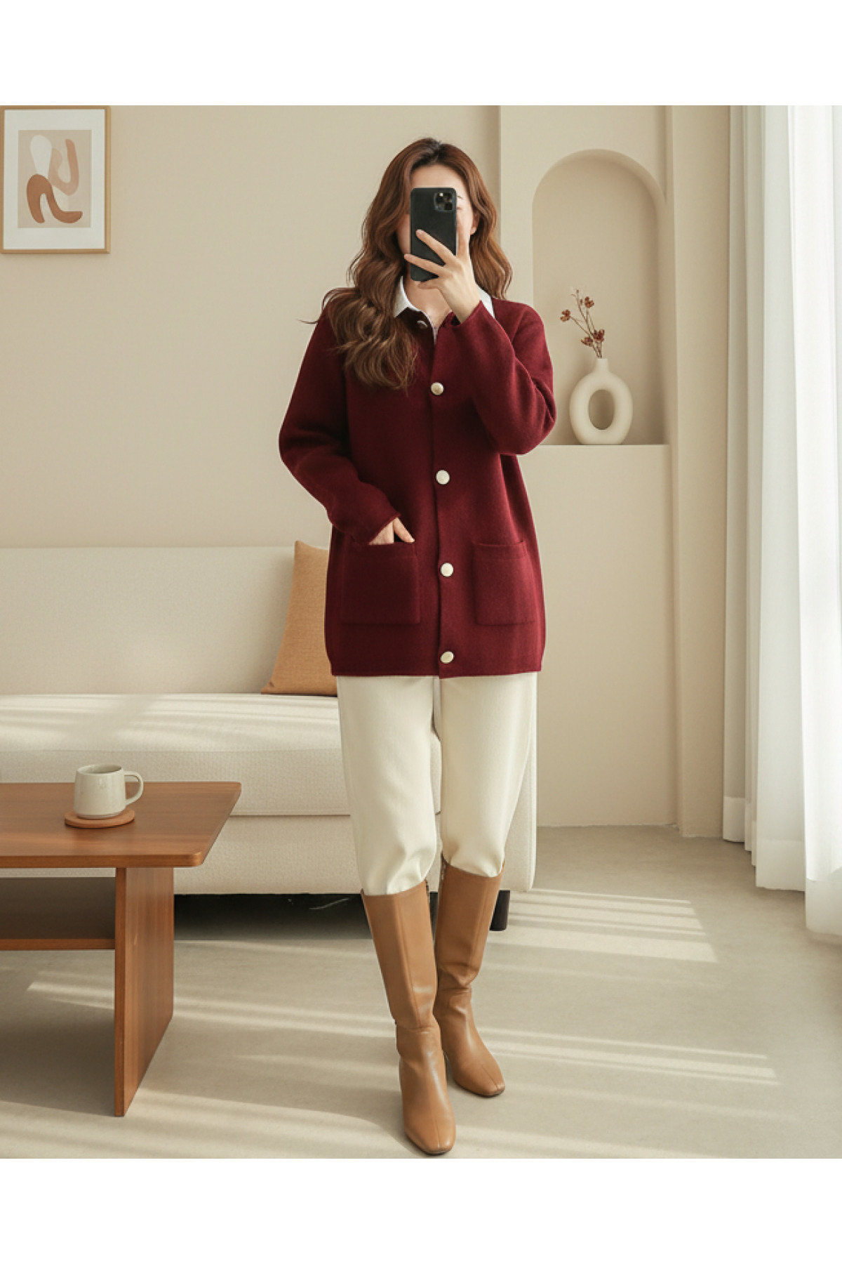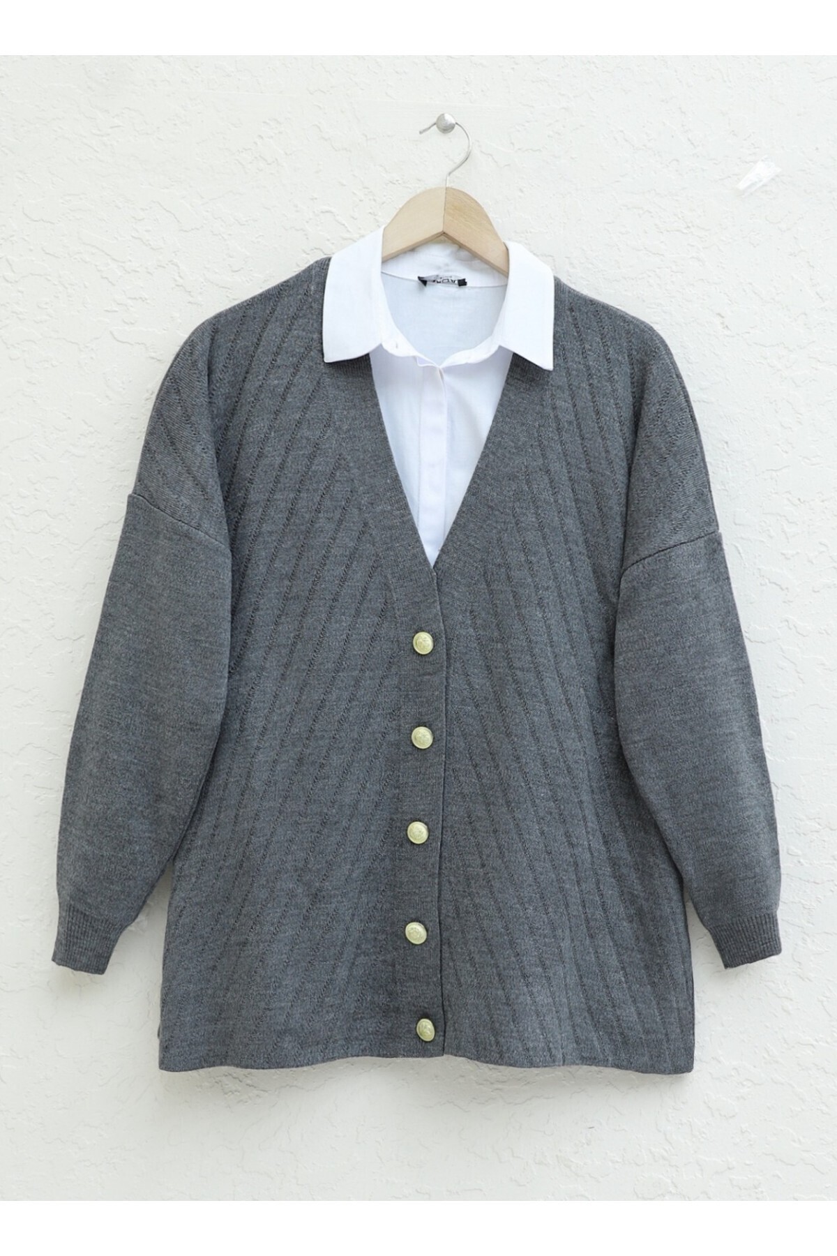 Çapraz Çizgili Broş Düğmeli Triko Hırka Çapraz Çizgili Broş Düğmeli Triko Hırka MR326933099 Standart