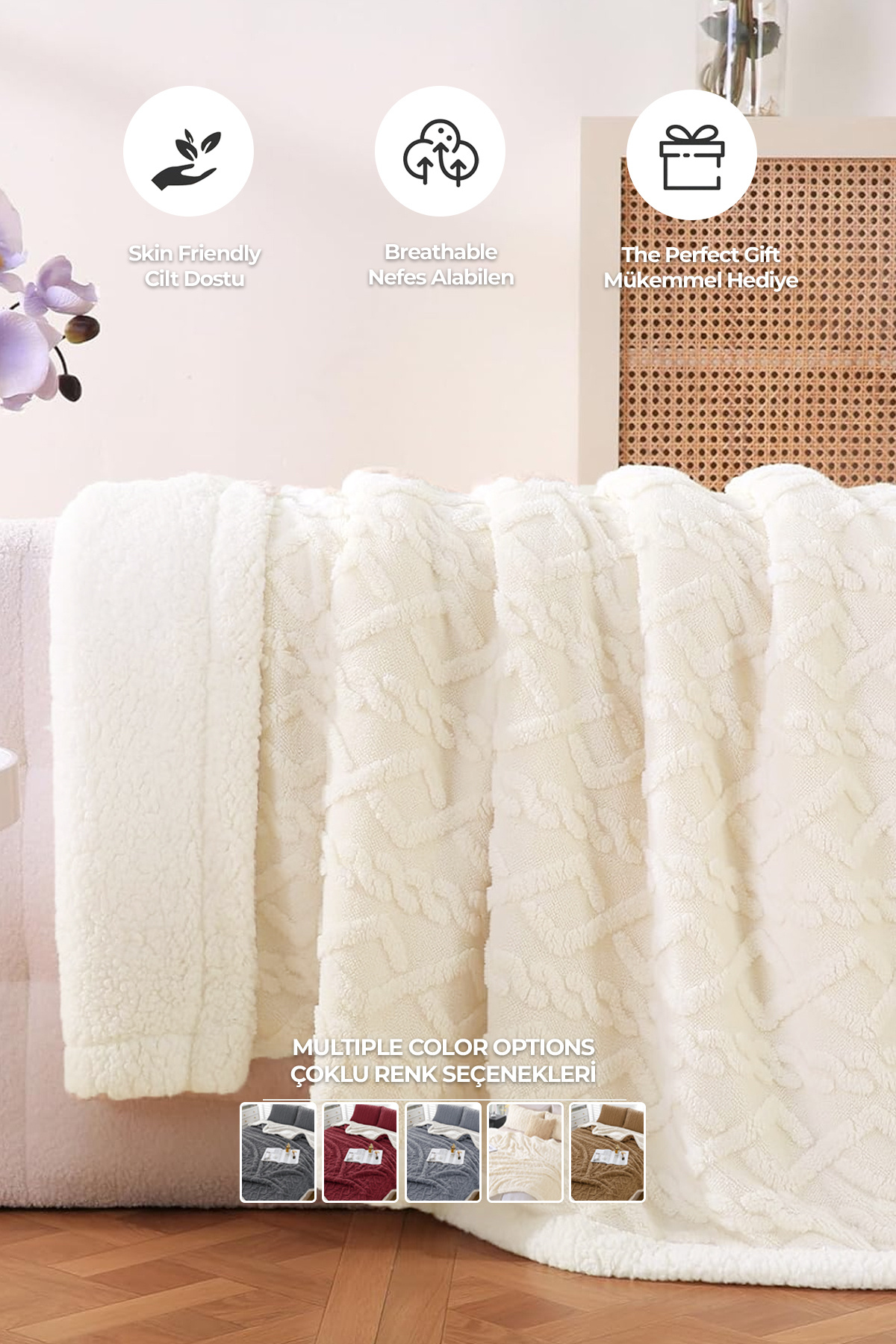 Pufly Jakar Sherpa Battaniye Seti Çift Kişilik 3 Parça Yumuşak Peluş Welsoft Yatak Örtüsü Krem Beyaz Pufly Jakar Sherpa Battaniye Seti Çift Kişilik 3 Parça Yumuşak Peluş Welsoft Yatak Örtüsü Krem Beyaz Q-YAT-26915 تک سایز