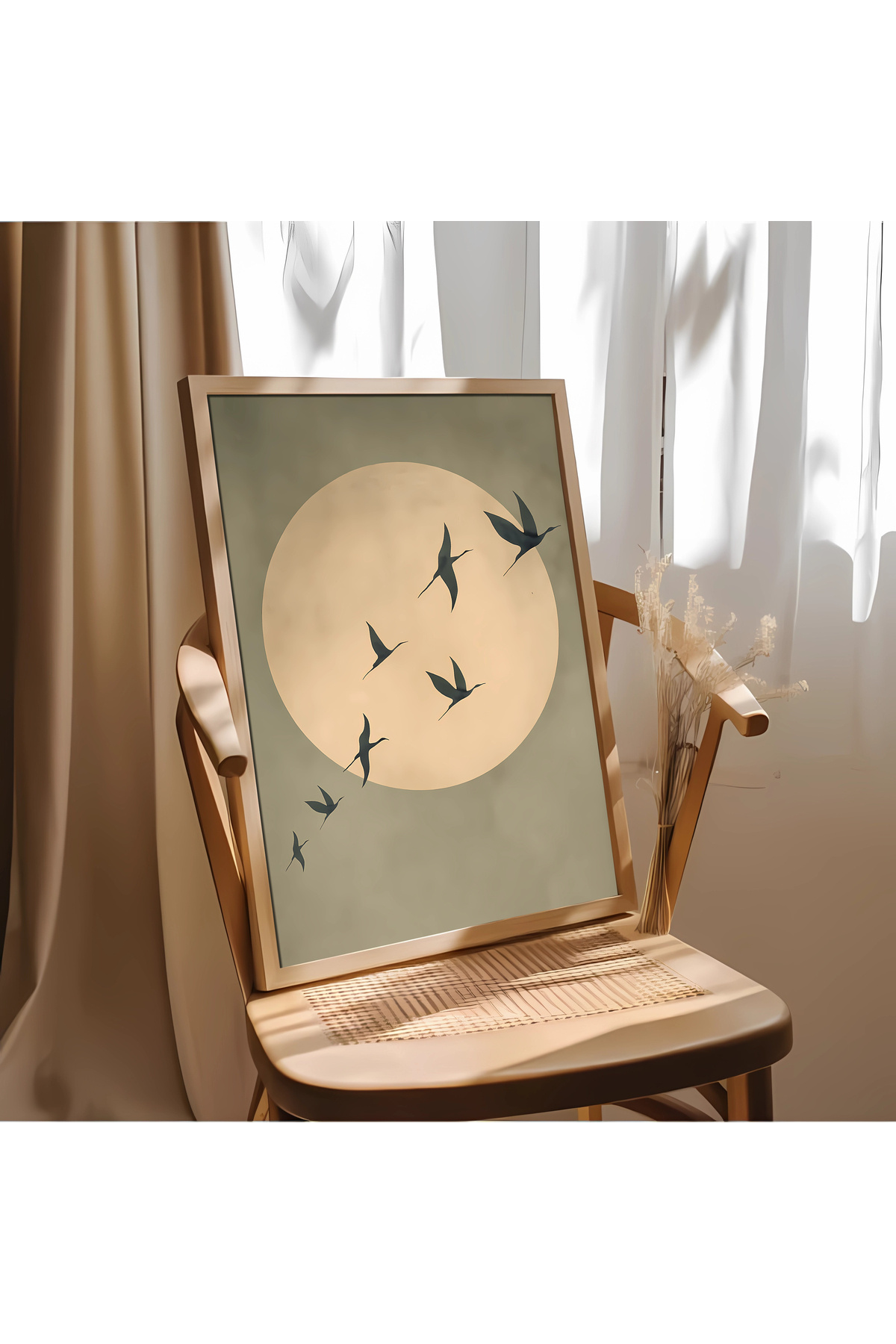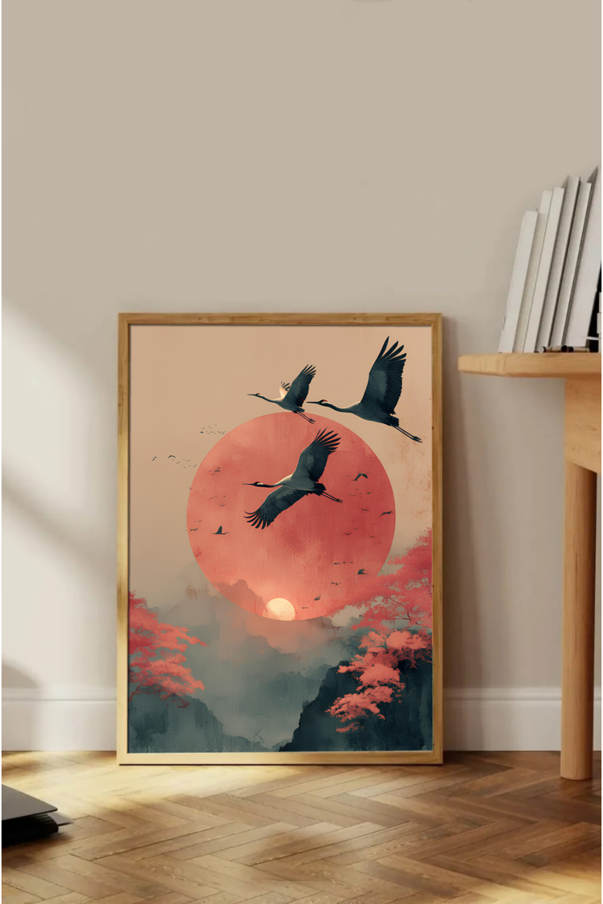 Uzak Doğunun Mistik Dinginliği - Gün Batımının Sıcak Tonları ve Turnaların Ahengi - Tekli Tablo Uzak Doğunun Mistik Dinginliği - Gün Batımının Sıcak Tonları ve Turnaların Ahengi - Tekli Tablo T188 50 x 70
