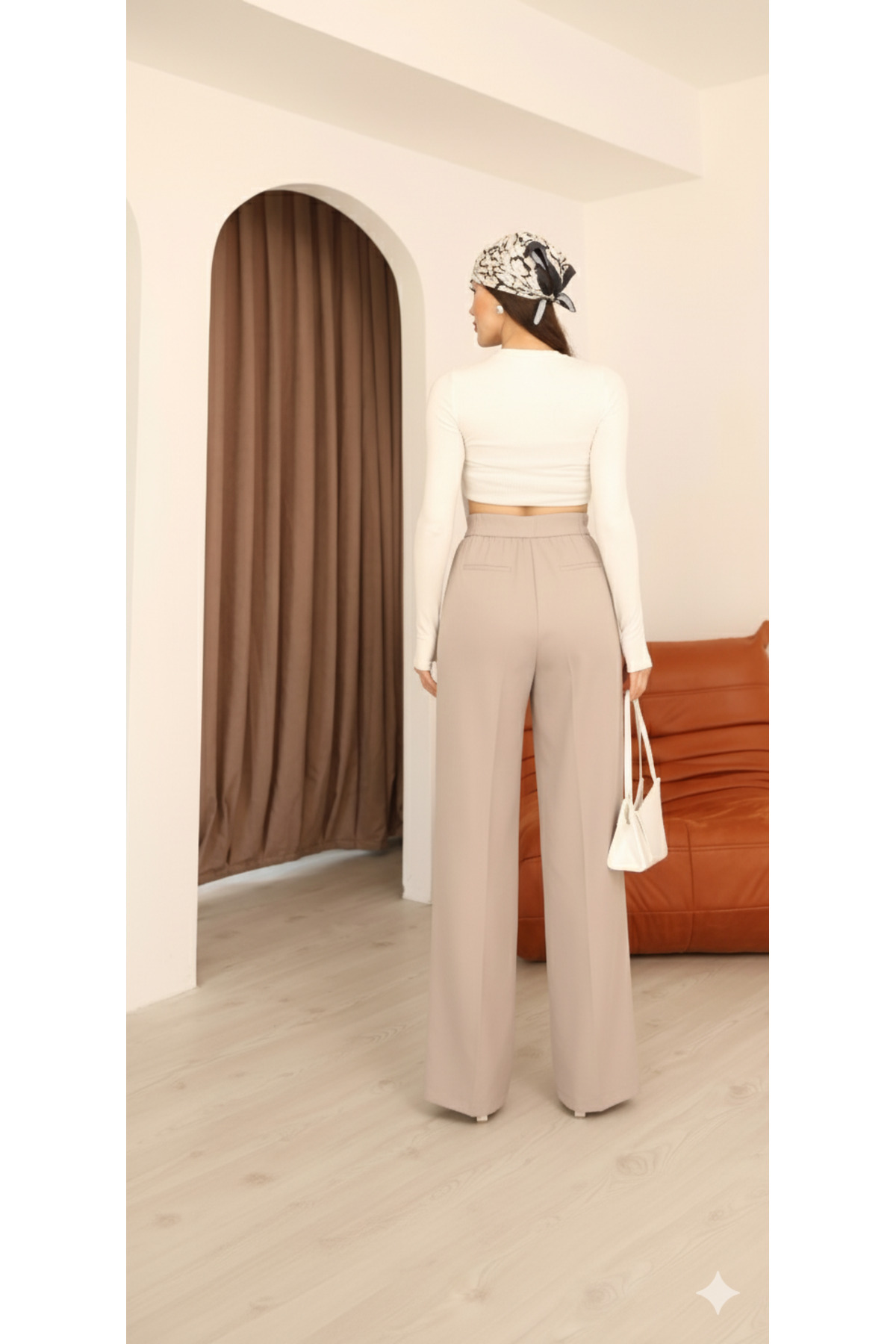 Kadın Taş Arkası Lastikli Palazzo Pantolon Kadın Taş Arkası Lastikli Palazzo Pantolon HZL4110 46