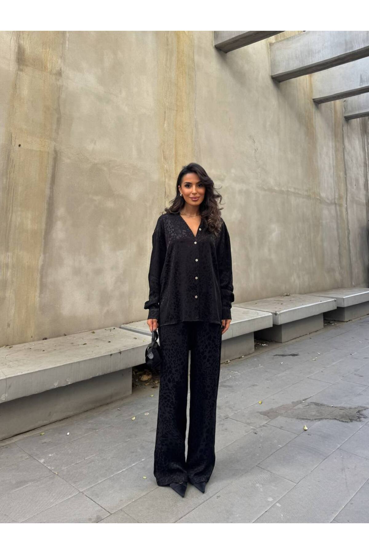 Kadın Leopar Desenli Saten Görünümlü Gömlek & Pantolon İkili Takım – Şık ve Rahat ZYN-58832 Kadın Leopar Desenli Saten Görünümlü Gömlek & Pantolon İkili Takım – Şık ve Rahat ZYN-58832 L