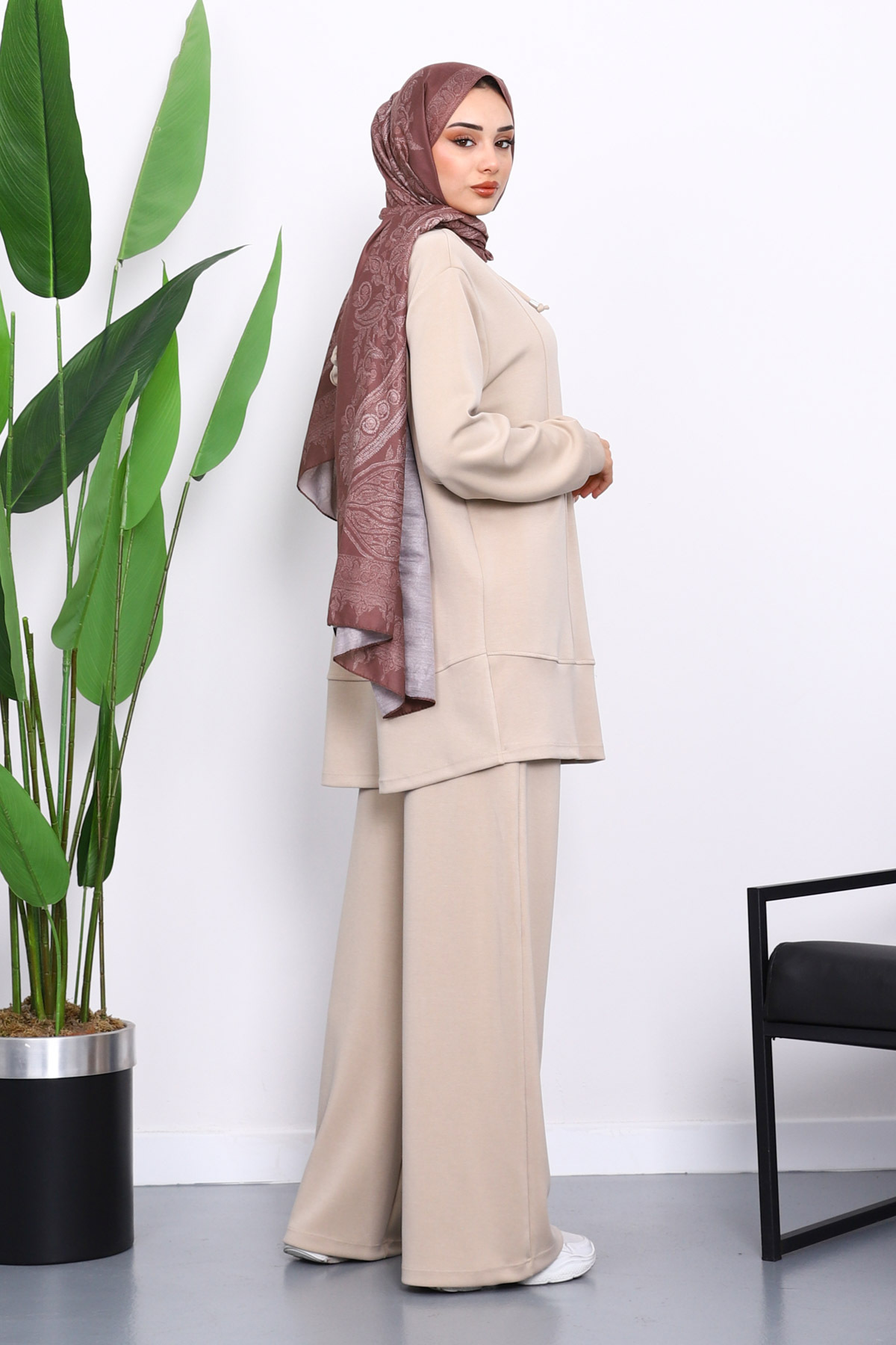 Bej Kapşonlu Tunik Pantolonlu Takım Bej Kapşonlu Tunik Pantolonlu Takım IMJ008387 2