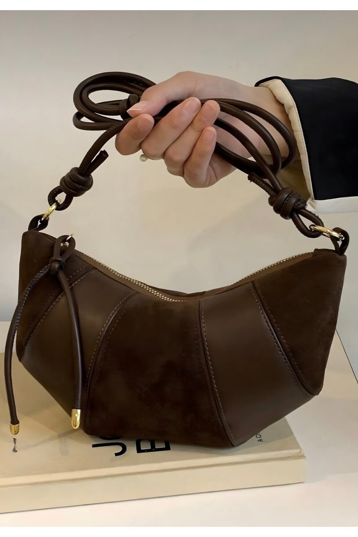 Süet Ve Deri Detaylı Kruvasan Model Kadın Kol Ve Omuz Çantası Süet Ve Deri Detaylı Kruvasan Model Kadın Kol Ve Omuz Çantası dmg-15 Standart