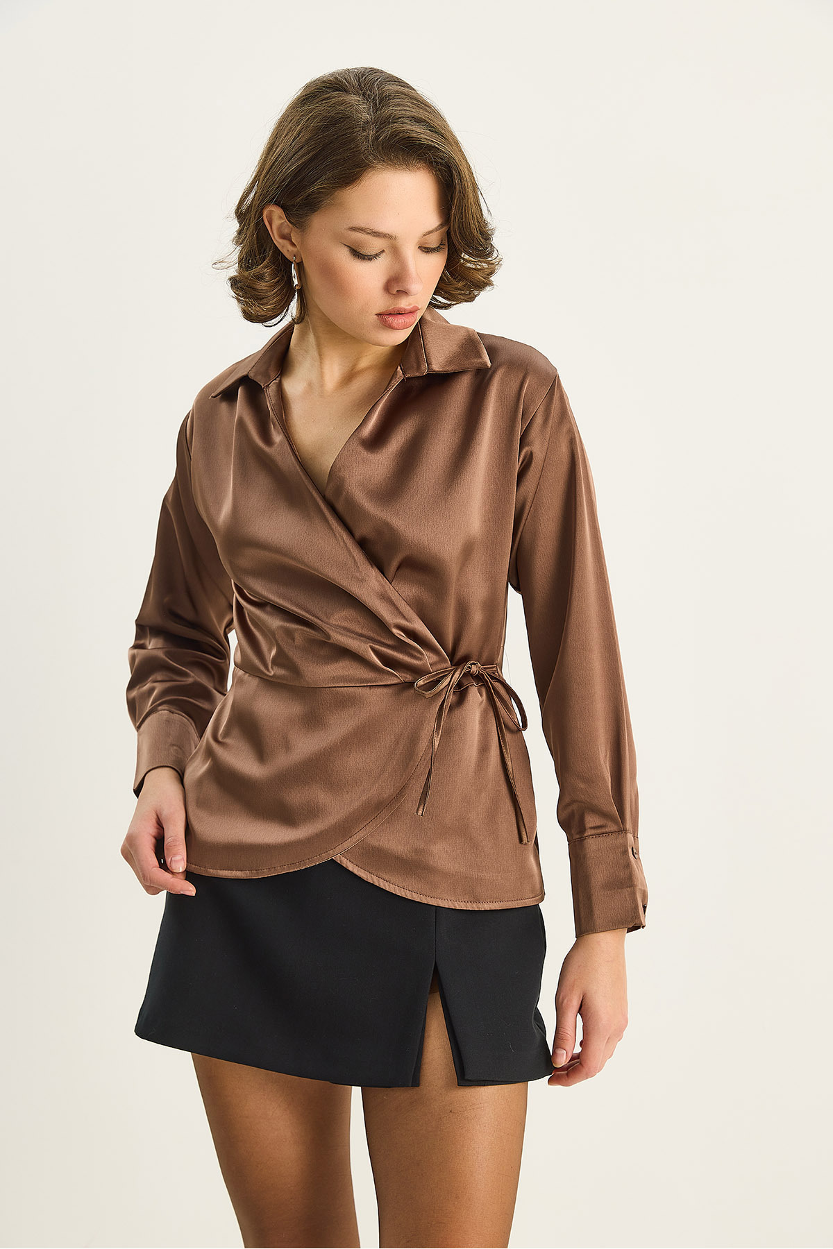 Kadın Kruvaze Yandan Bağlamalı Saten Gömlek 2133 60283752 Kadın Kruvaze Yandan Bağlamalı Saten Gömlek 2133 60283752 L