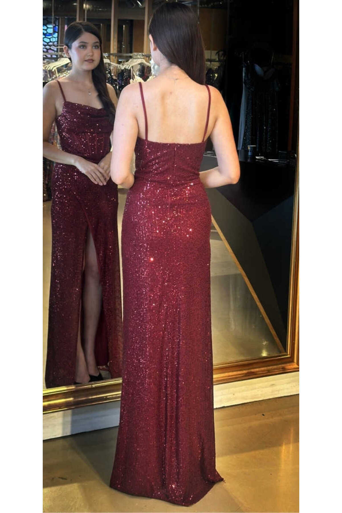 Bordo İp Askılı Degaje Yaka Yırtmaçlı Düz Kesim Payet Uzun Abiye Elbise 7711 Bordo İp Askılı Degaje Yaka Yırtmaçlı Düz Kesim Payet Uzun Abiye Elbise 7711 44