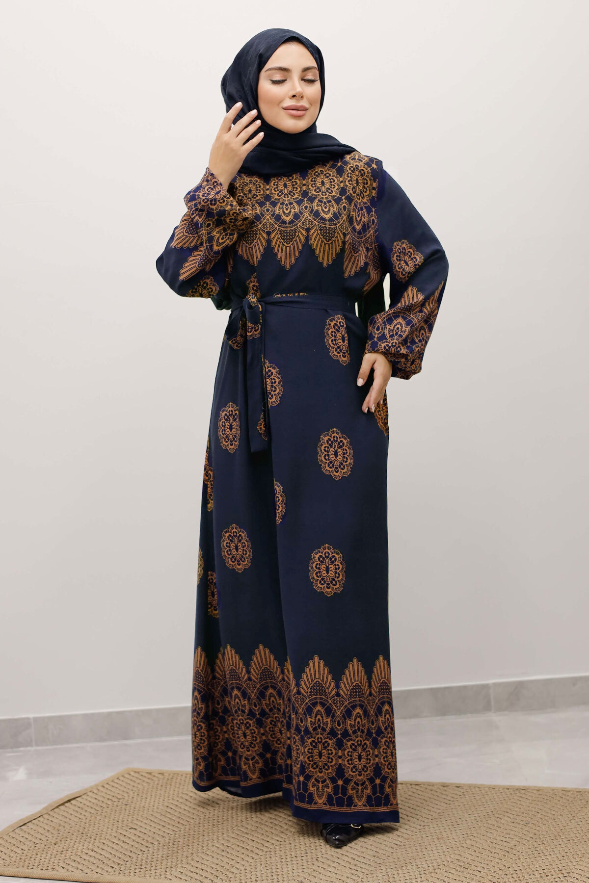 Çini Desenli Viskon Elbise TSD250237 Lacivert Çini Desenli Viskon Elbise TSD250237 Lacivert 52