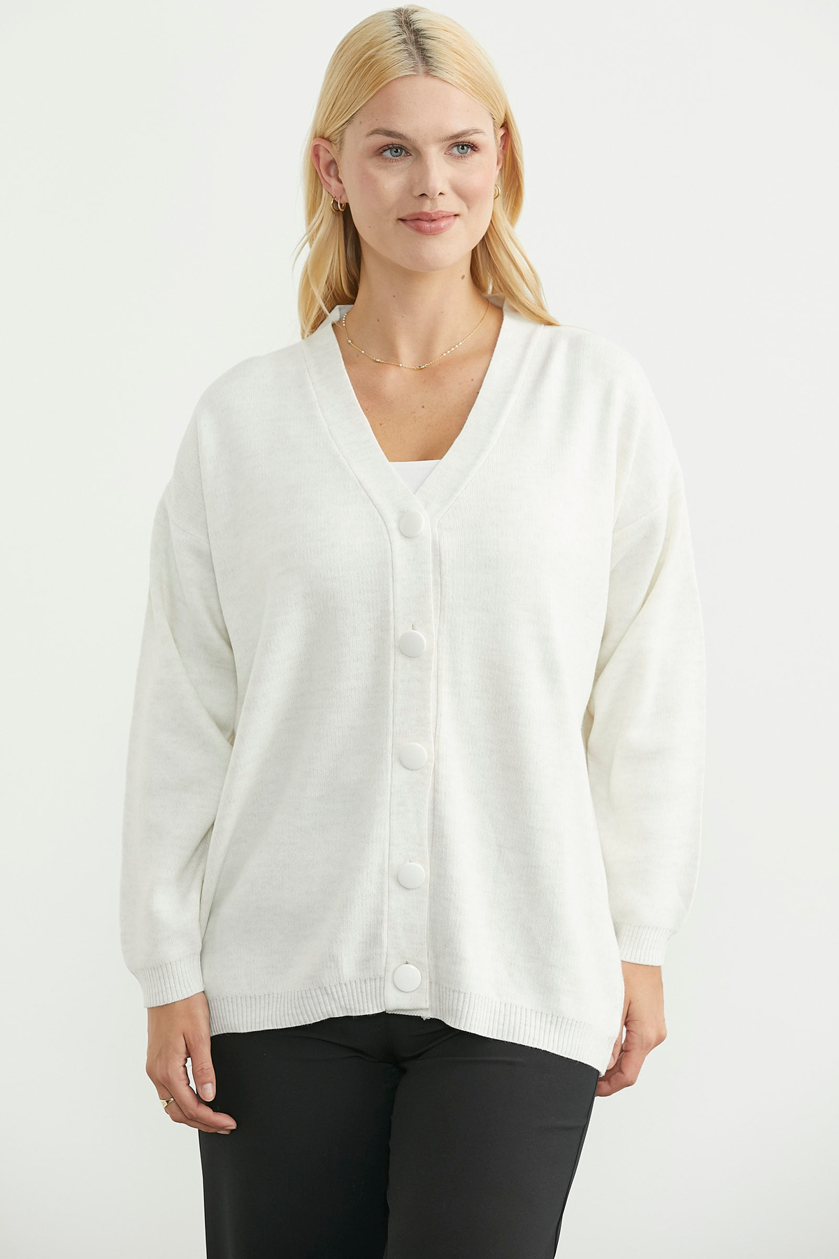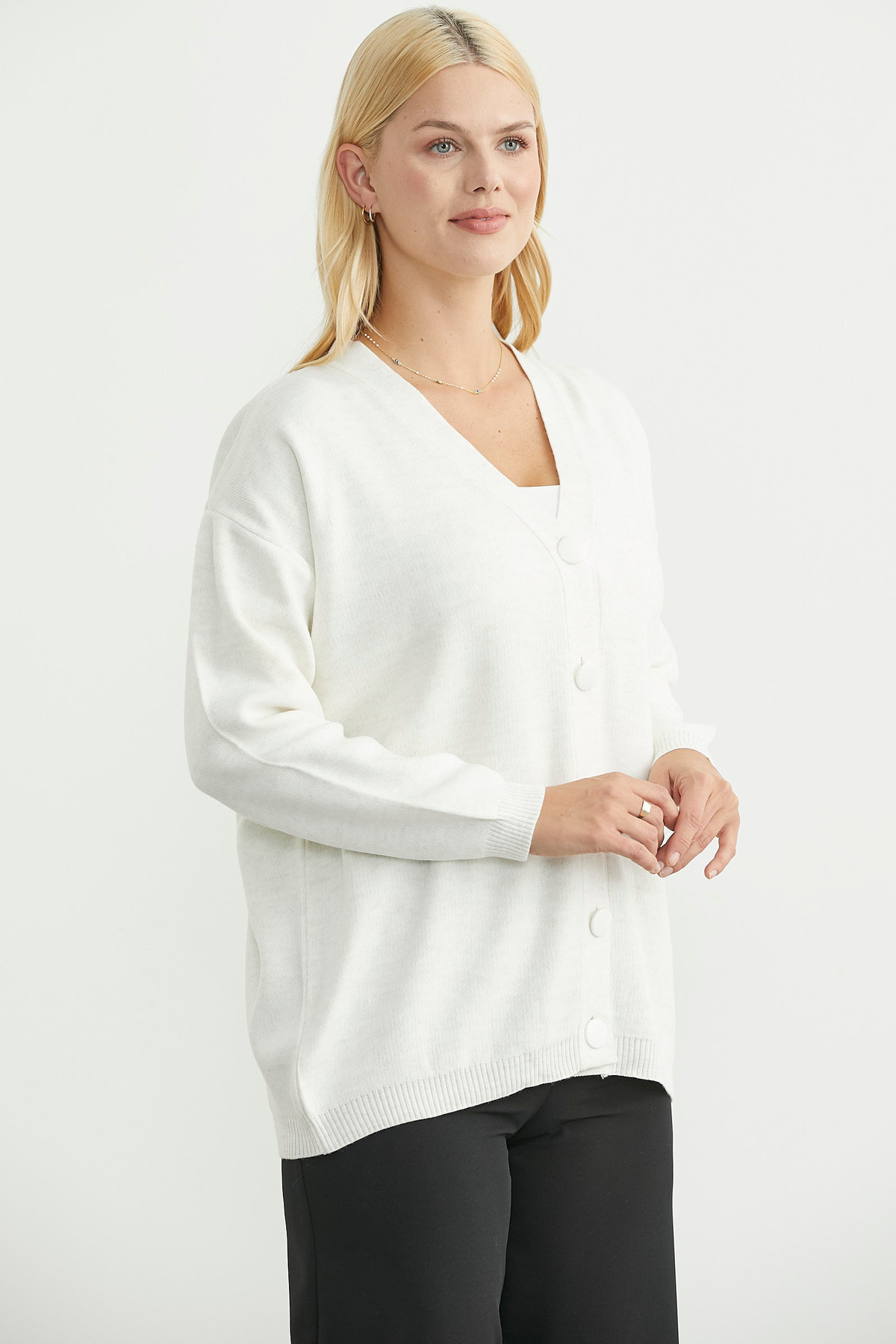 V Yaka Salaş Düğmeli Triko Hırka - Kemik V Yaka Salaş Düğmeli Triko Hırka - Kemik 25K2412-VSN1254.01 Standart