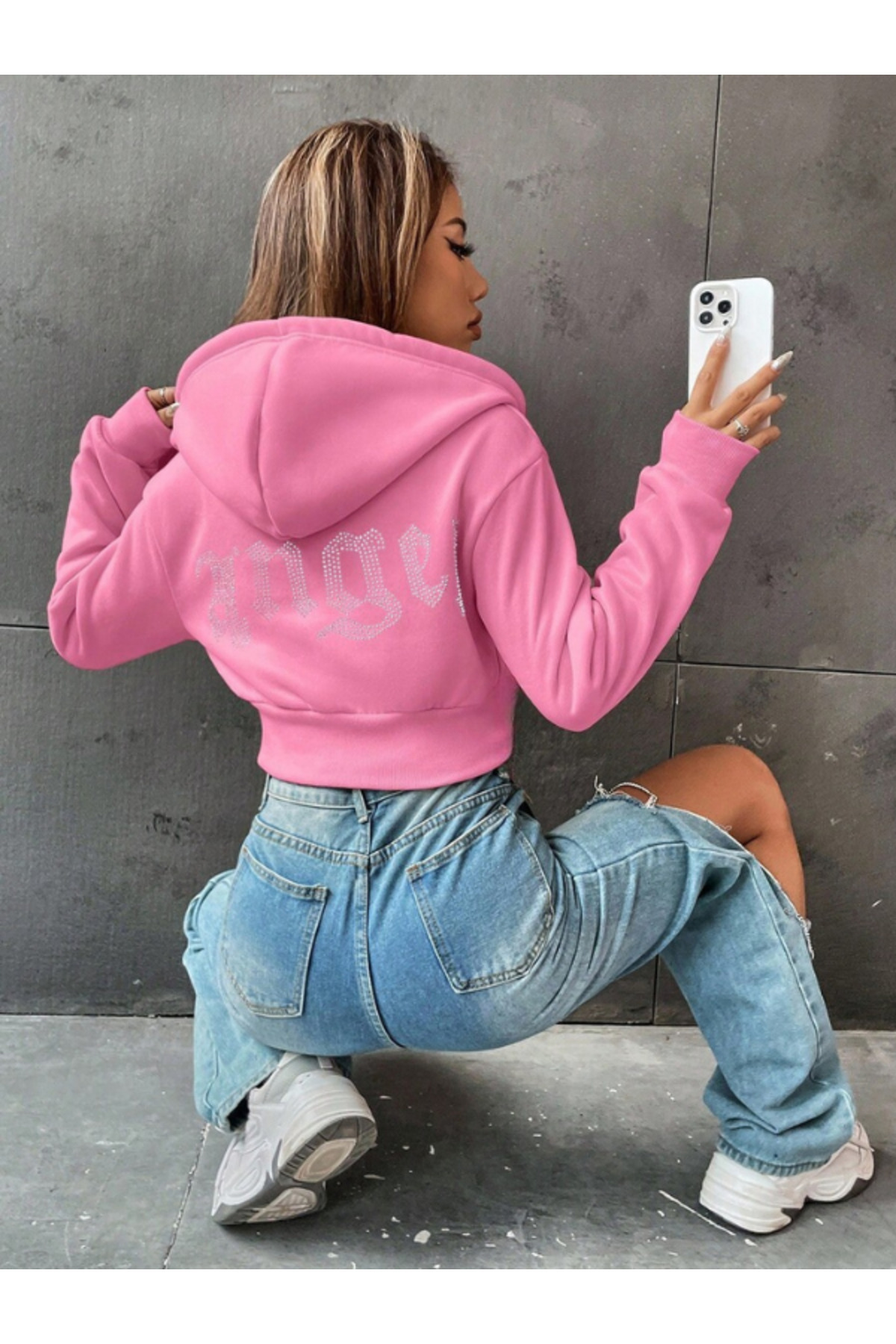 Kadın Angel Taş Sırt Baskılı Kapüşonlu Fermuarlı Crop Sweatshirt Kadın Angel Taş Sırt Baskılı Kapüşonlu Fermuarlı Crop Sweatshirt angeltaş_fermswt XL