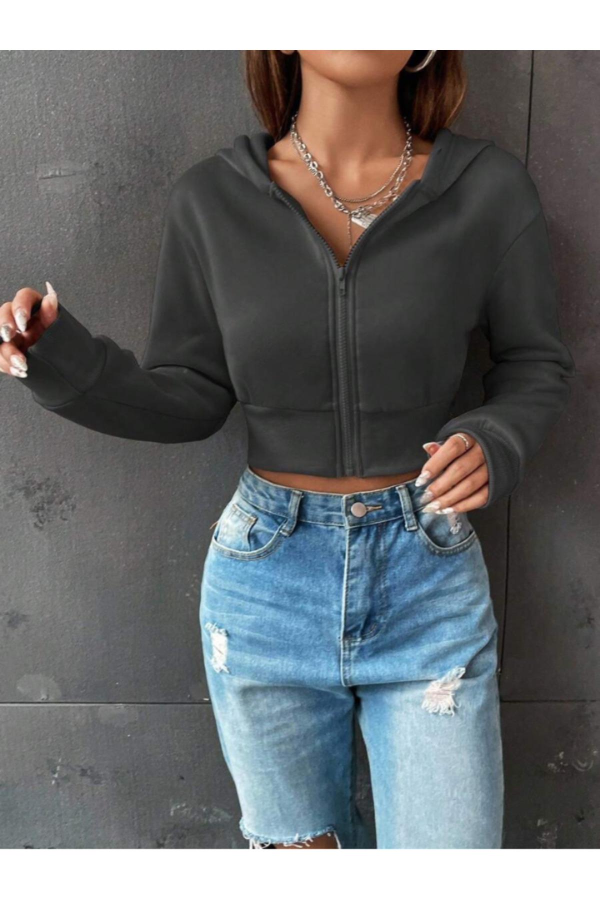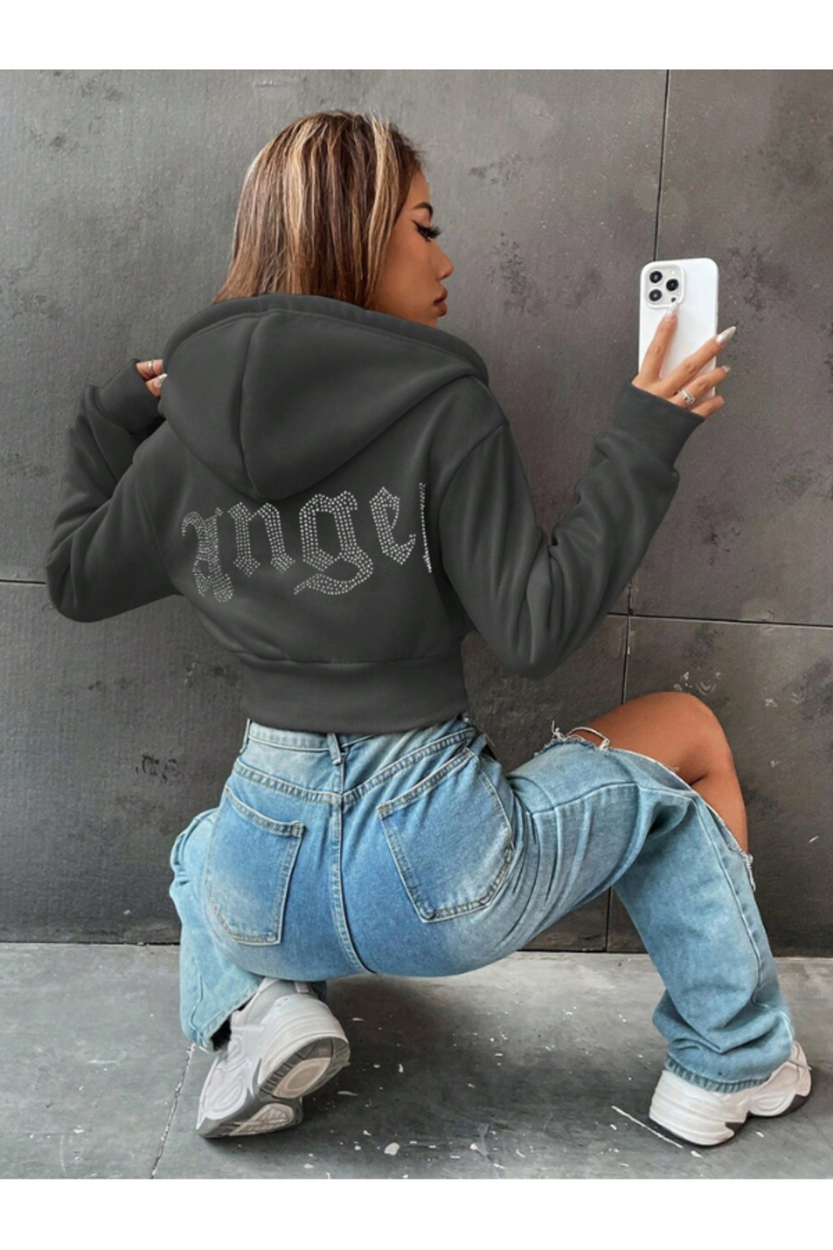 Kadın Angel Taş Sırt Baskılı Kapüşonlu Fermuarlı Crop Sweatshirt Kadın Angel Taş Sırt Baskılı Kapüşonlu Fermuarlı Crop Sweatshirt angeltaş_fermswt XL