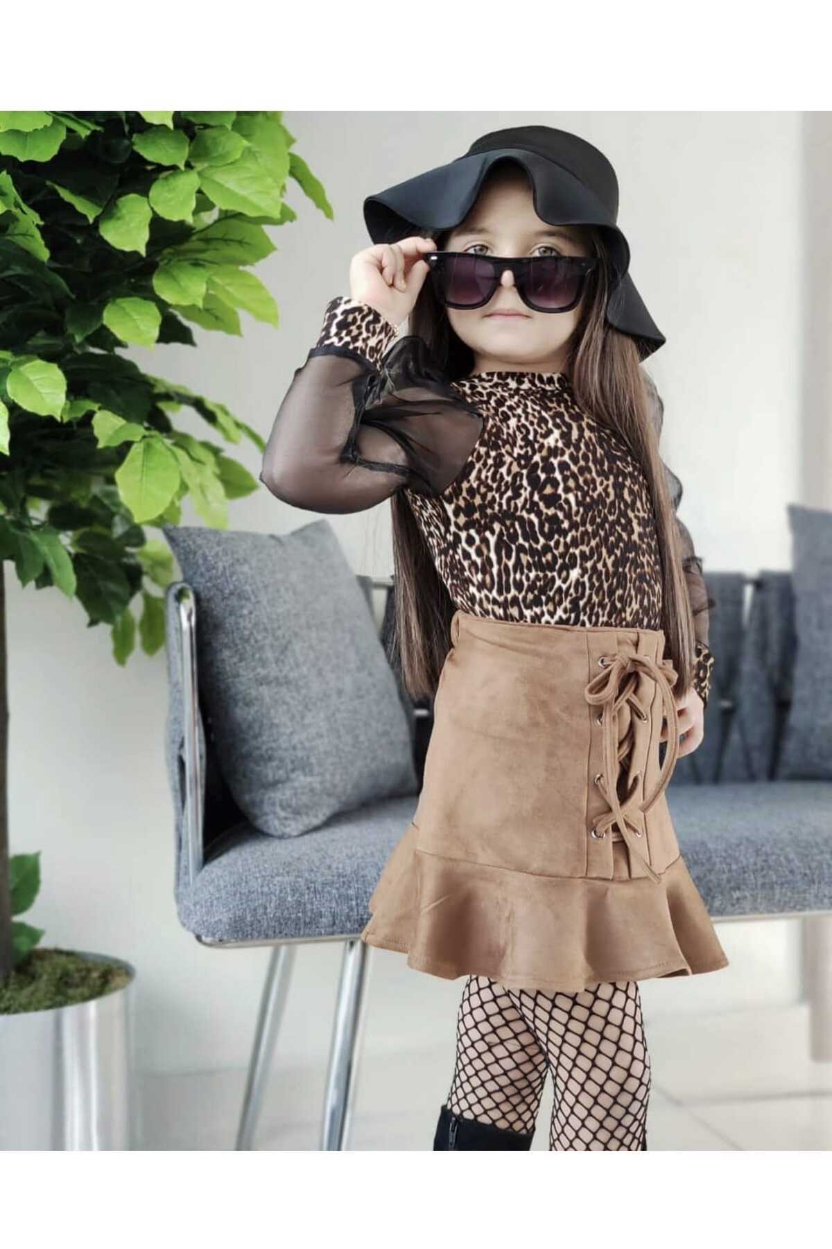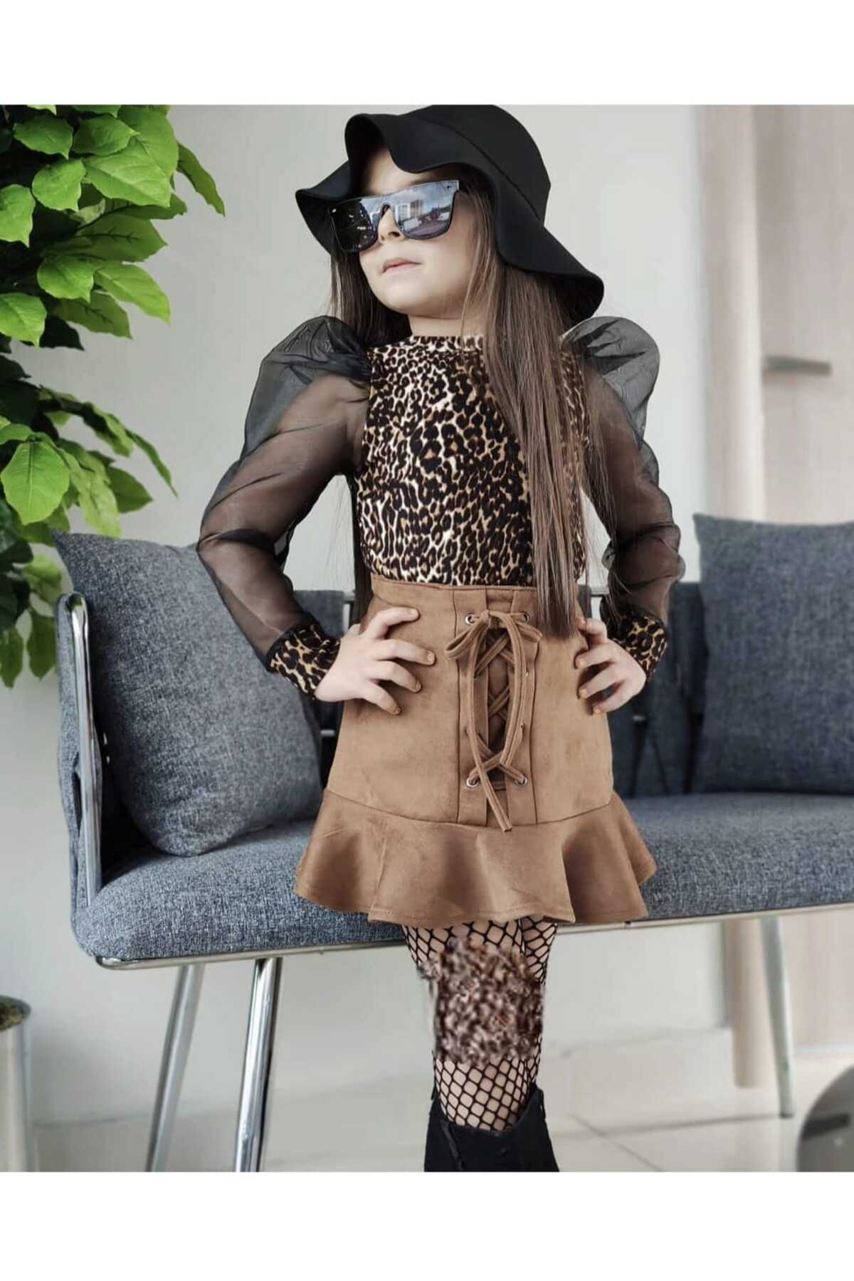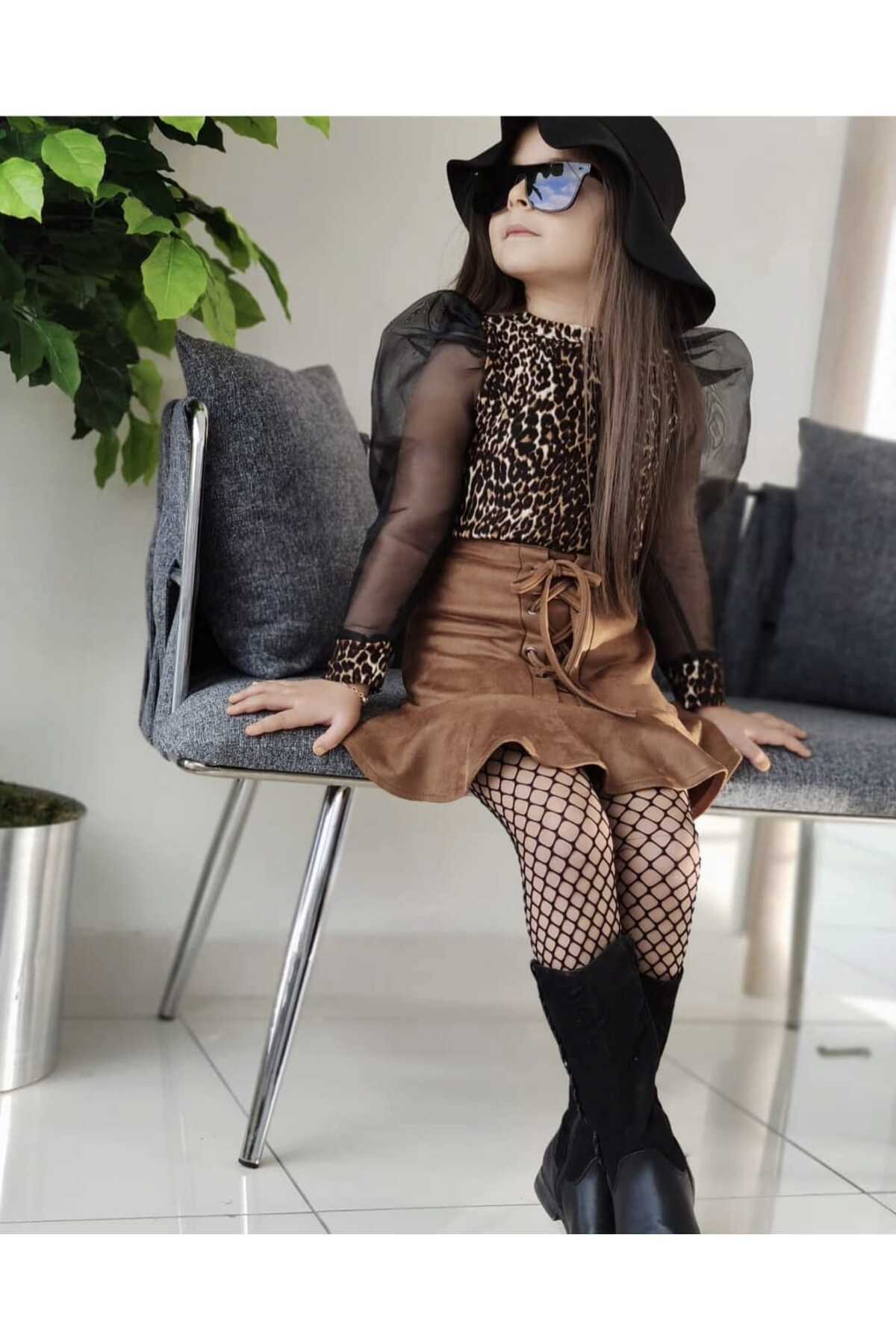 Şık Leopar Bluz & Fırfırlı Süet Etek Kombin Şık Leopar Bluz & Fırfırlı Süet Etek Kombin 5 3-4 Yaş