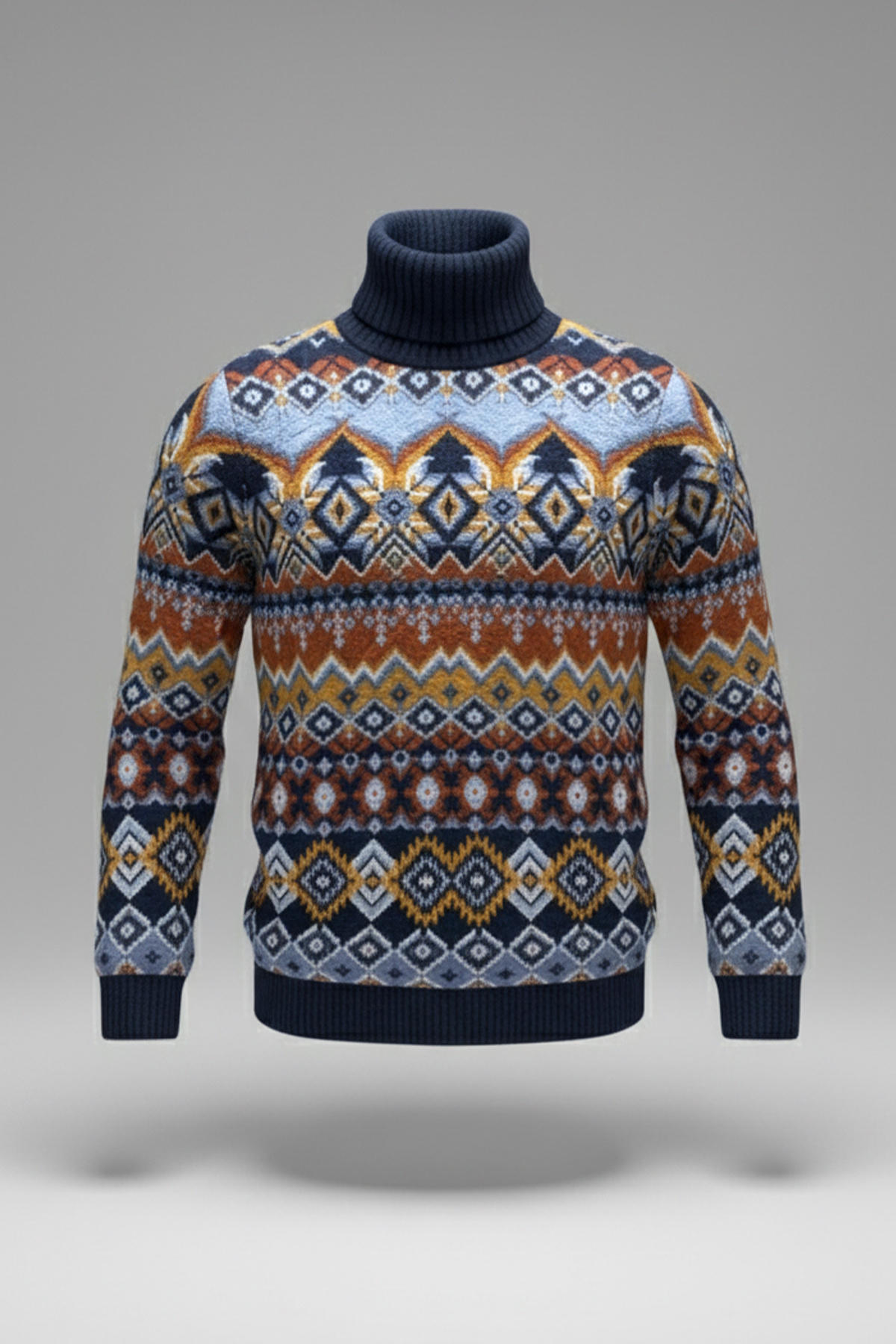 Erkek Balıkçı Yaka Etnik Desenli Kazak | %68 Kuzu Yünü Erkek Balıkçı Yaka Etnik Desenli Kazak | %68 Kuzu Yünü T230-527 2XL
