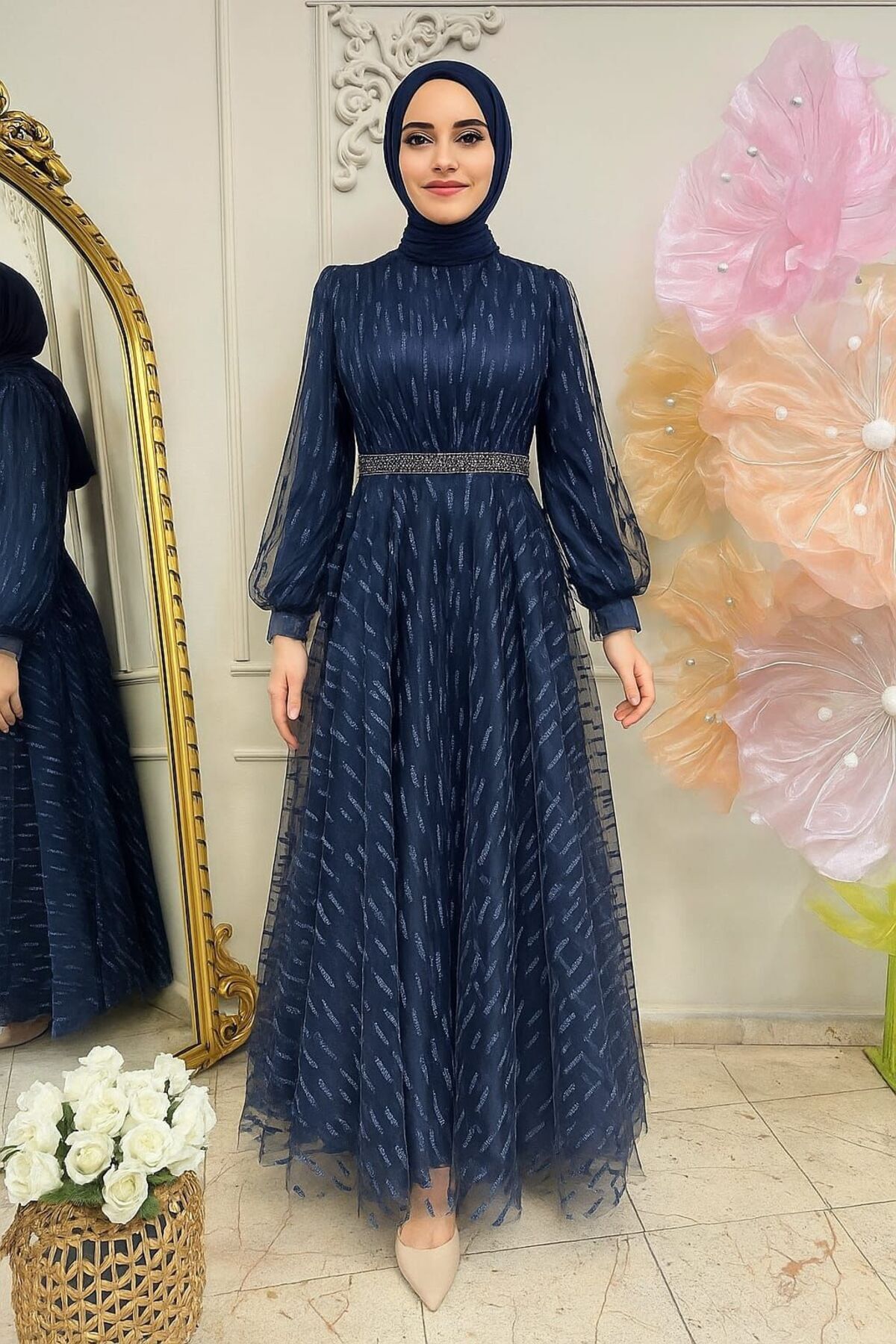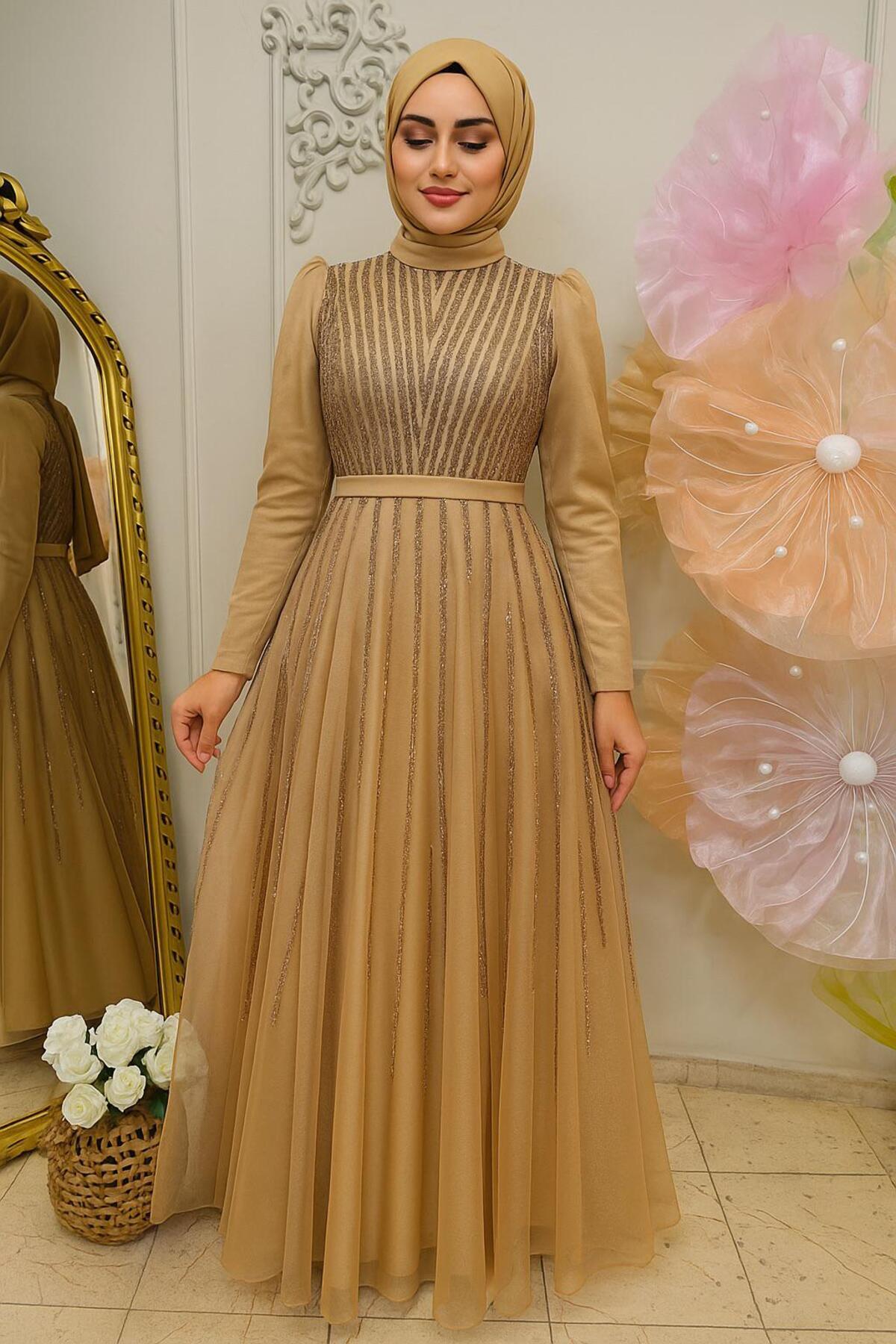 Kabarık Taşlı Prenses Model Tesettür Abiye Elbise Kabarık Taşlı Prenses Model Tesettür Abiye Elbise kg7174 46