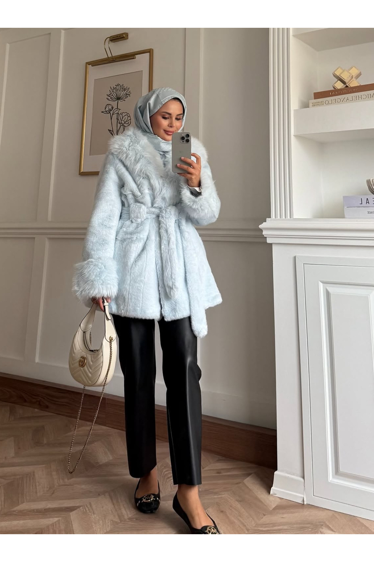Kürk Detaylı Kuşaklı Peluş Mont Kürk Detaylı Kuşaklı Peluş Mont 2026K-159 L