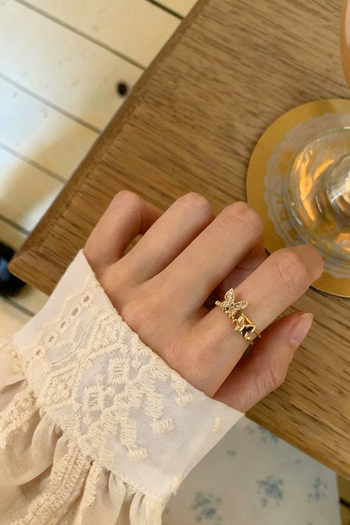 Altın Kaplama Kelebek Ayarlanabilir Yüzük Altın Kaplama Kelebek Ayarlanabilir Yüzük JZ-CGD-CZ-BUT004 60