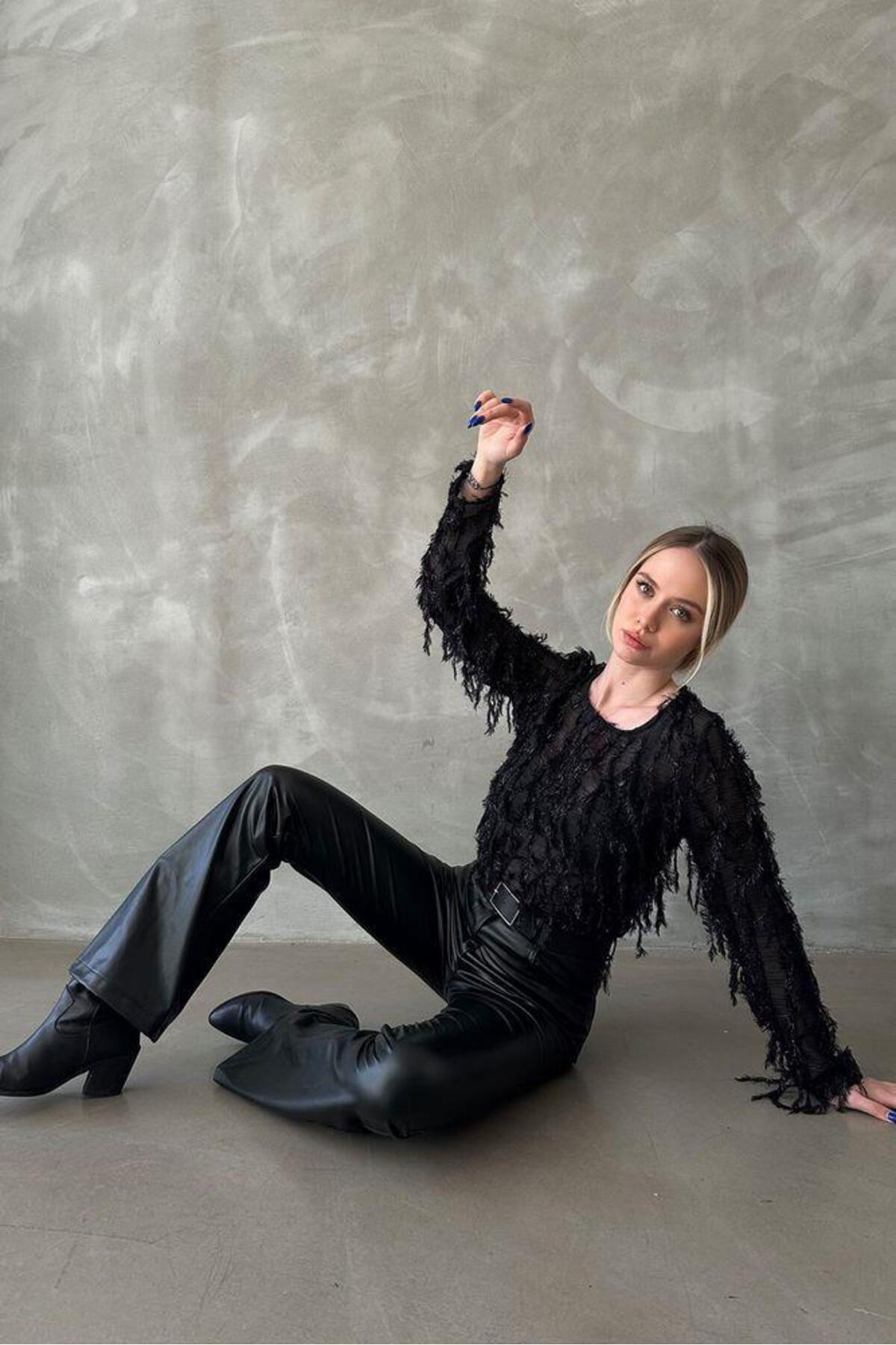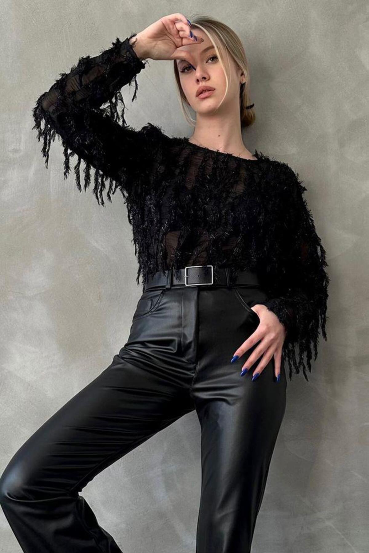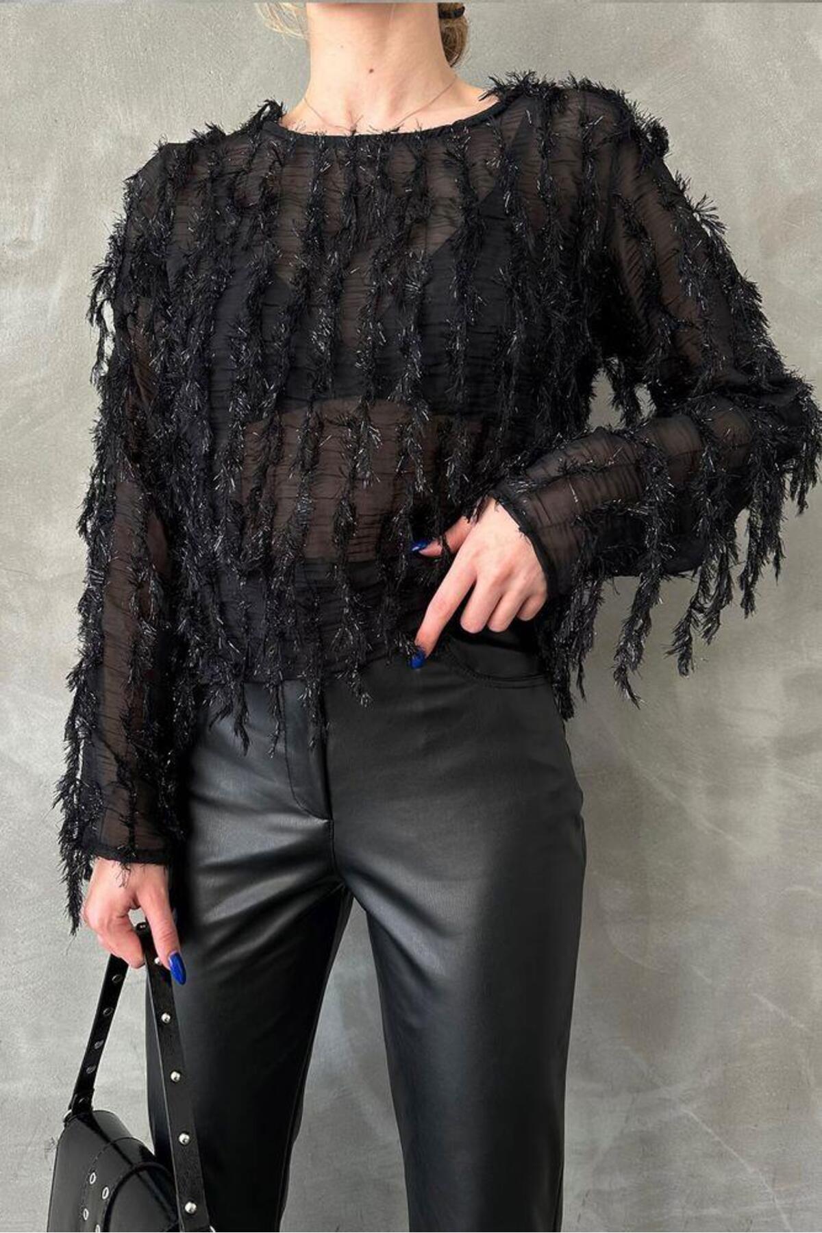 Siyah Saç Örgülü Bluz Siyah Saç Örgülü Bluz f1601293 L