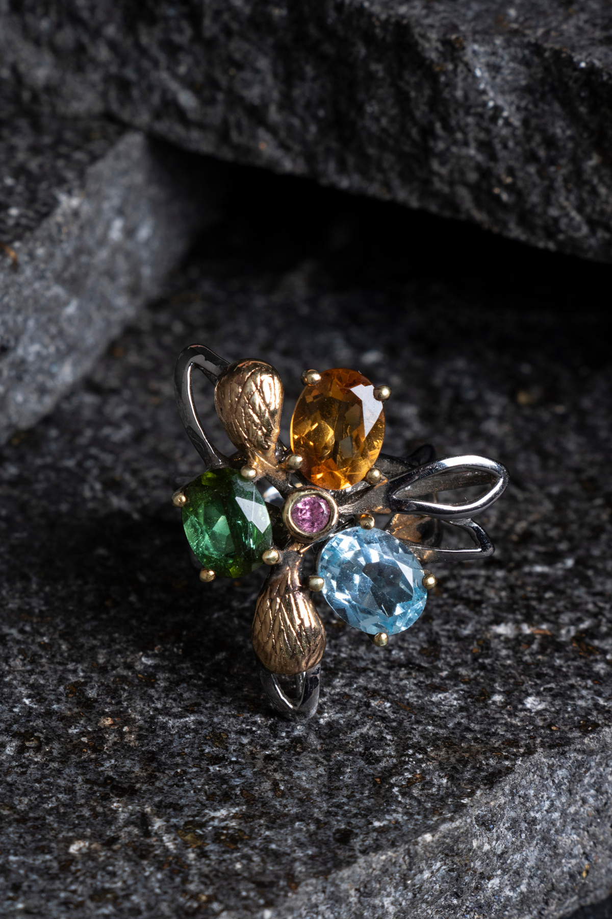 Sertifikalı İridyumlu Zebercet, Akuamarin, Sitrin, Turmalin Gümüş Özel Tasarım Yüzük Sertifikalı İridyumlu Zebercet, Akuamarin, Sitrin, Turmalin Gümüş Özel Tasarım Yüzük 8683817062861 تک سایز