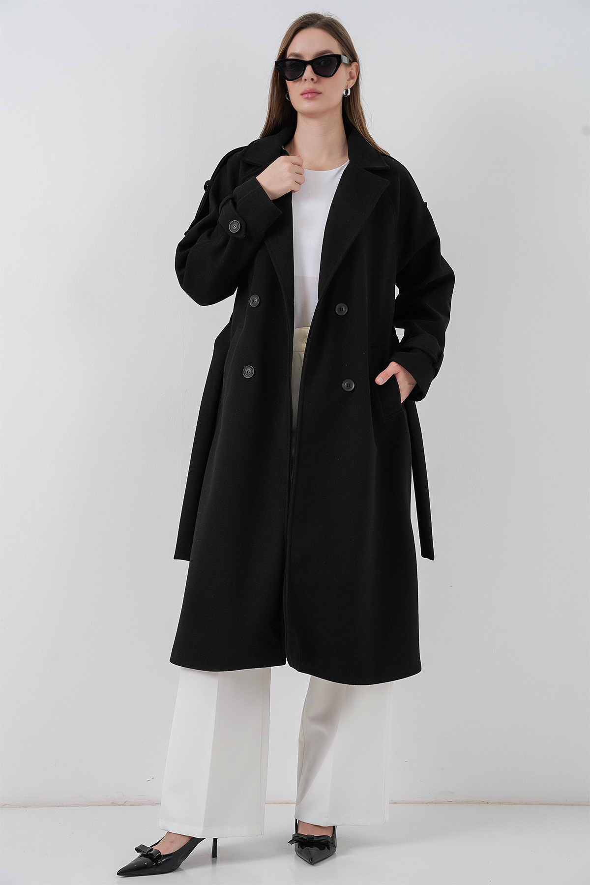 Kadın Kuşaklı Kaşe Kaban 9161 - Siyah Kadın Kuşaklı Kaşe Kaban 9161 - Siyah 9161BGD19 44