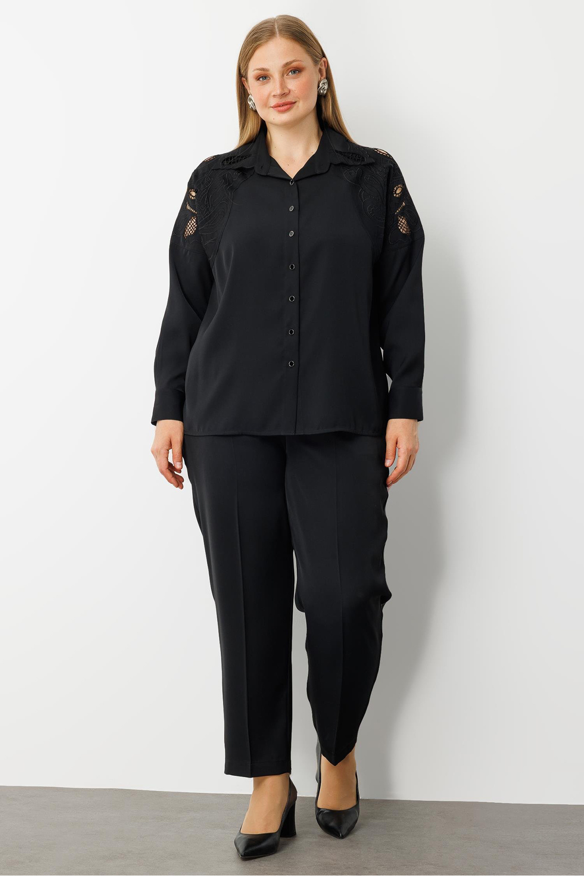 Kadın Büyük Beden Nakış Detaylı Oversize Gömlek 0041 Siyah Kadın Büyük Beden Nakış Detaylı Oversize Gömlek 0041 Siyah GLD260GMK40041 46