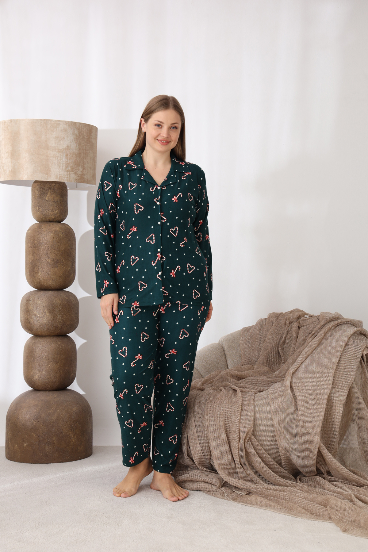 Büyük Beden Pamuklu Ekose Kareli Uzun Kollu Düğmeli Gömlek Pijama Takımı Büyük Beden Pamuklu Ekose Kareli Uzun Kollu Düğmeli Gömlek Pijama Takımı 00603 5XL