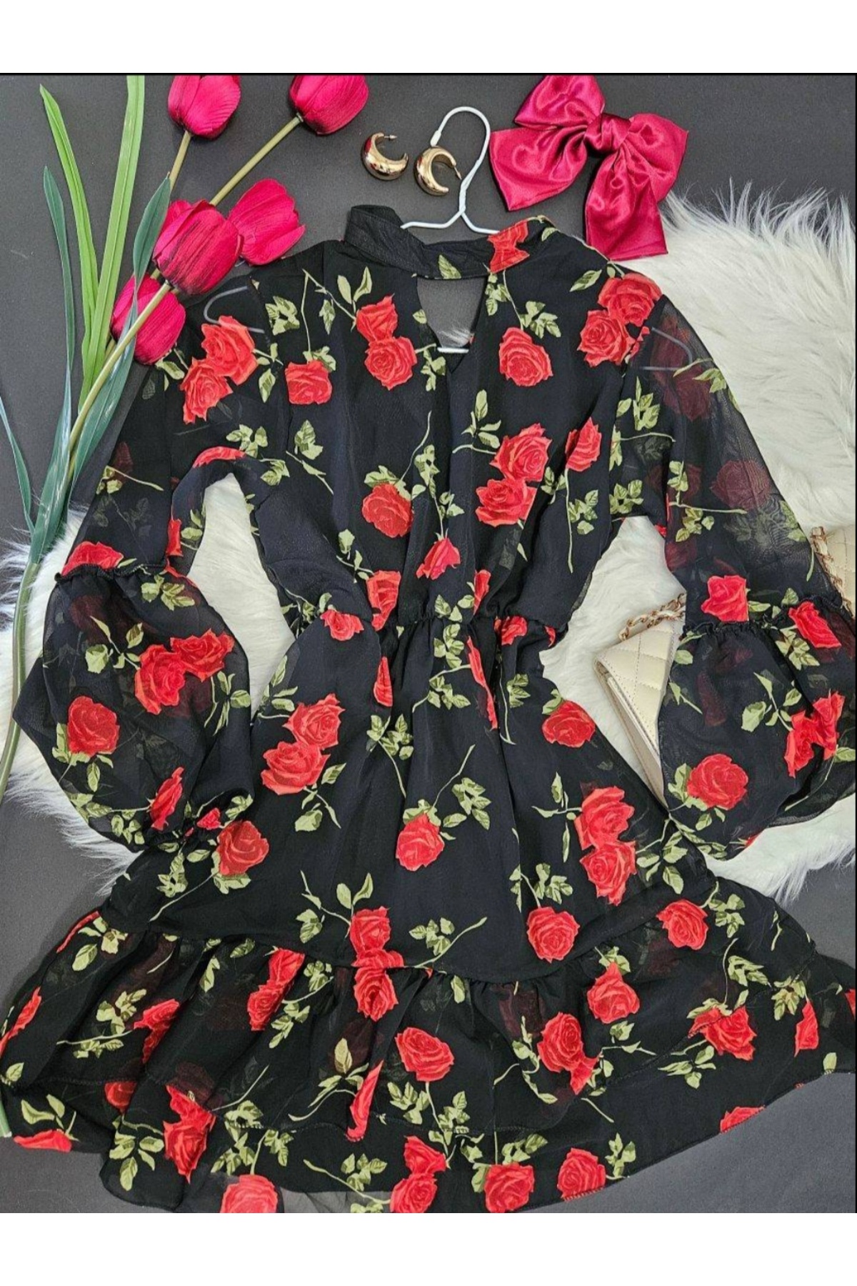 Kemer Aksesuarlı Şifon Elbise Kemer Aksesuarlı Şifon Elbise TYC5FEBF5FAD46B8BCA324A00 M