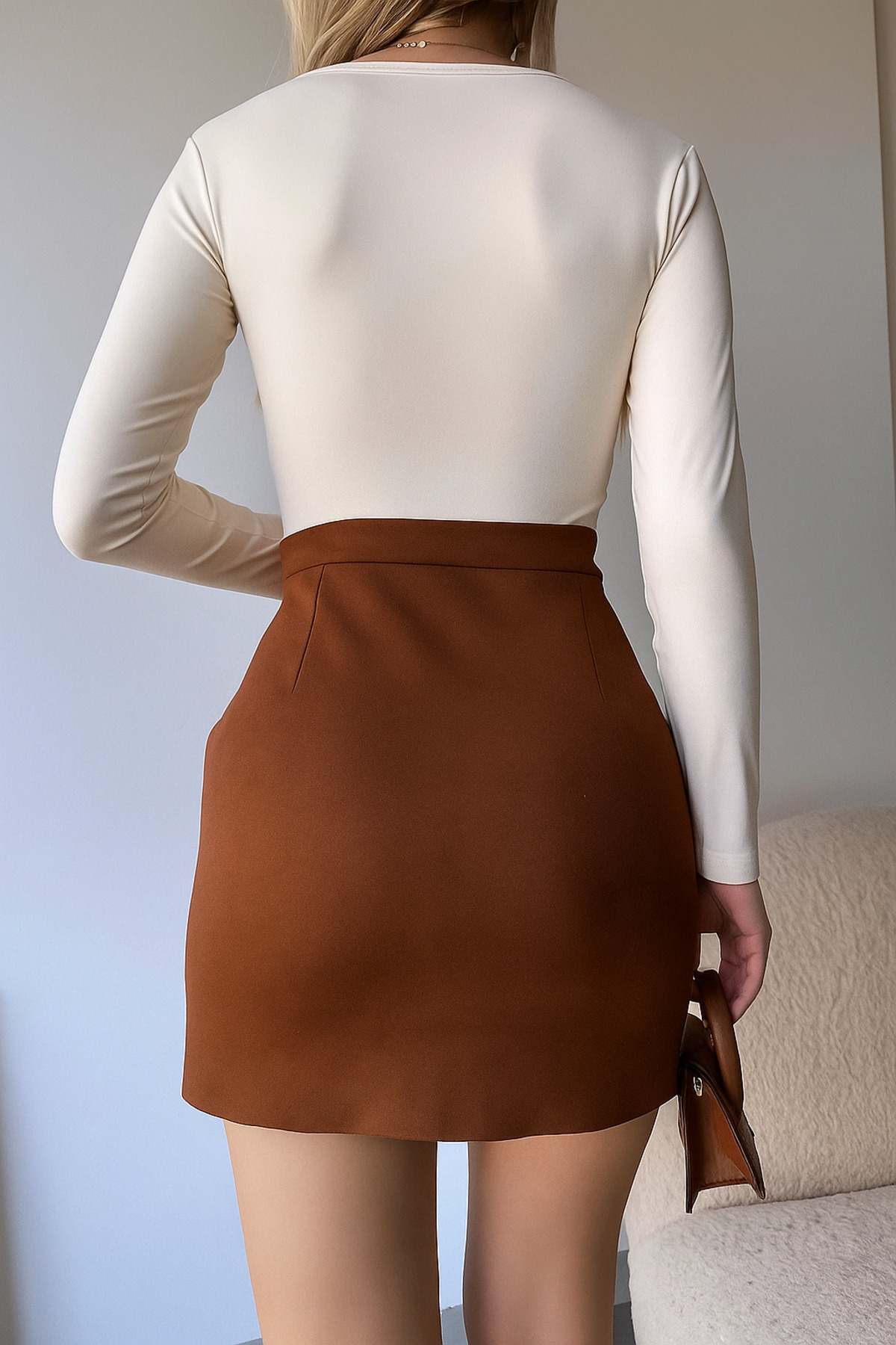 Kadın V Yaka Ekru Crop Uzun Kol Yeni Sezon Bluz Kadın V Yaka Ekru Crop Uzun Kol Yeni Sezon Bluz BLZ-2023009 L