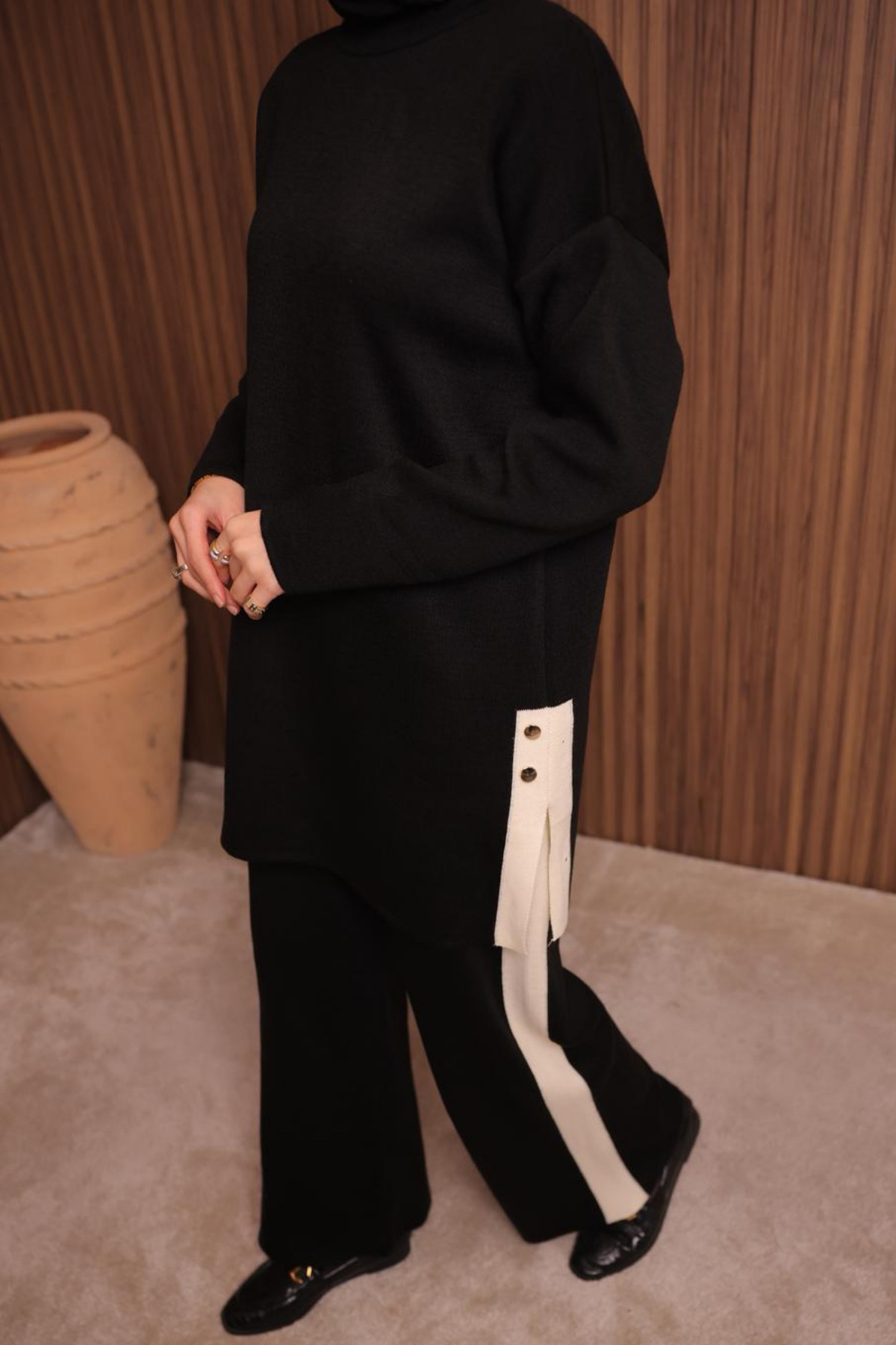 Kadın Oversize Düz Dokuma Yırtmaçlı Tesettür Triko Takım 1136 Kadın Oversize Düz Dokuma Yırtmaçlı Tesettür Triko Takım 1136 BK1136 تک سایز