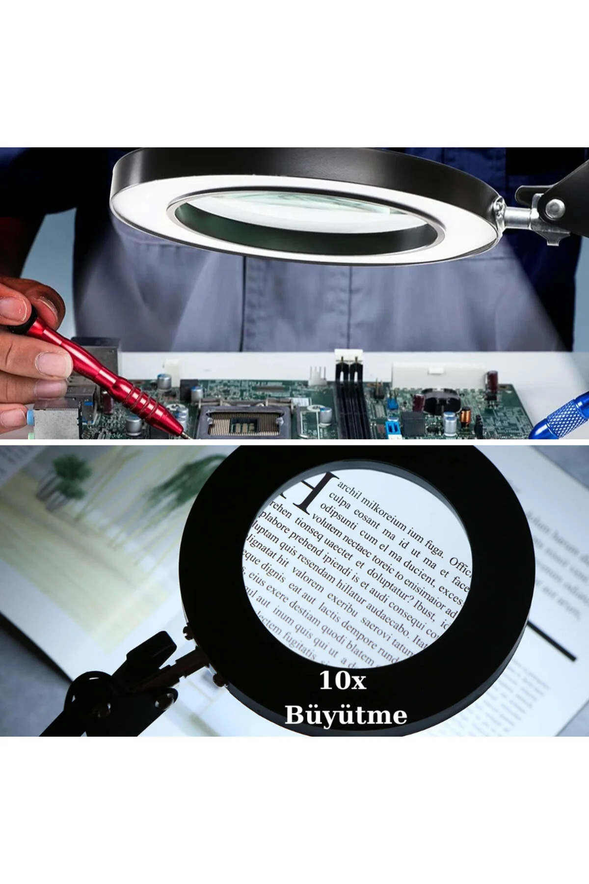 LED Işıklı 10X Mercekli Büyüteç Lamba Masa Üstü Katlanabilir 3 Renk Modu Ayarlanabilir Taşınabilir LED Işıklı 10X Mercekli Büyüteç Lamba Masa Üstü Katlanabilir 3 Renk Modu Ayarlanabilir Taşınabilir Büyüteç10X تک سایز