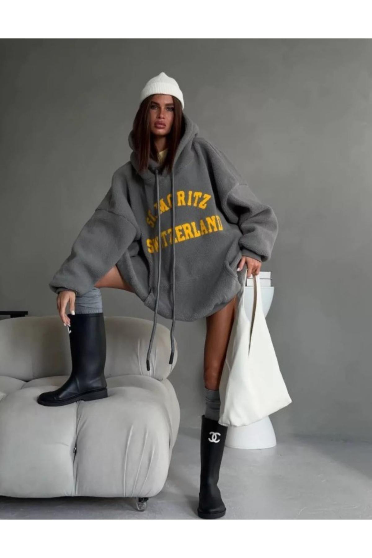 ST Morıtz Baskılı Kapşonlu Polar Sweatshirt ST Morıtz Baskılı Kapşonlu Polar Sweatshirt polarSTmorıtzsweat 6XL