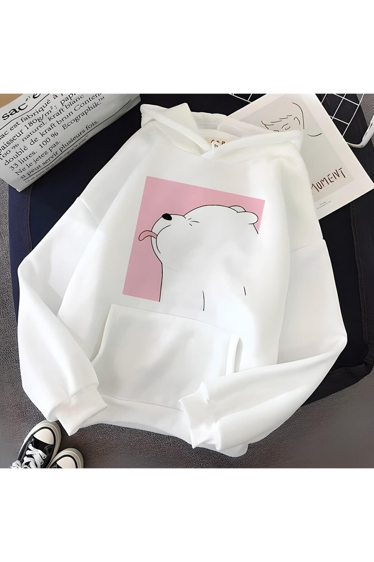 Kadın Panda Baskılı Oversize Kapüşonlu Sweatshirt Kadın Panda Baskılı Oversize Kapüşonlu Sweatshirt 0008 2XL